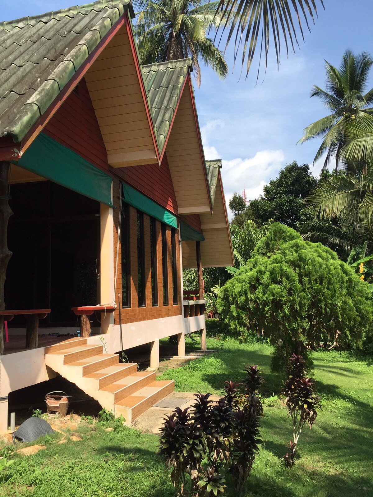 Một ngôi nhà ấm cúng được trang bị đầy đủ nội thất và được trang bị đầy đủ tiện nghi nằm trên một chỗ ở rộng rãi với một khu vườn nhiệt đới được bảo trì đẹp mắt, tiếp giáp với một con sông sạch sẽ (theo mùa). Một bãi biển cát trắng đẹp như tranh vẽ và khu mua sắm thuận tiện chỉ cách đó 5-10 phút đi xe máy. Thung lũng Klong Son nguyên sơ, phủ đầy rừng nhiệt đới hoang sơ, là nơi sinh sống của động vật hoang dã đa dạng, thác nước và khu bảo tồn voi. Địa điểm yên tĩnh và thanh bình này lý tưởng cho những người yêu thiên nhiên và dễ dàng khám phá cả hai phía của Ko Chang