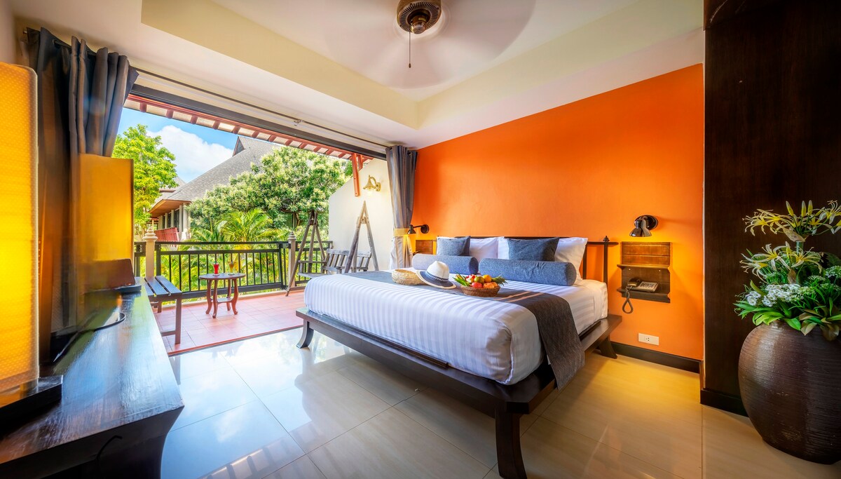 33 m2. Sử dụng tốc độ, bungalow 1 phòng ngủ, 1 giường cỡ king cho 2 người, phòng tắm riêng bán mở với vòi sen, đặt trong một khu vườn nhiệt đới, riêng tư cho thời gian lưu trú thư giãn của bạn và tận hưởng hoạt động cùng một lúc. Máy lạnh, nước nóng, ga trải giường tiện nghi, ฺáo choàng tắm, máy sấy tóc, tủ lạnh, ấm đun nước, cà phê, Wi-Fi miễn phí, bãi đỗ xe miễn phí Chính sách về trẻ em Cho phép trẻ em từ 4 tuổi trở lên, trẻ em từ 4-10 tuổi có thể ở với giá 400 THB/đêm, 11 tuổi trở lên với giá 700 THB/đêm khi sử dụng giường hiện có, bao gồm bữa sáng.