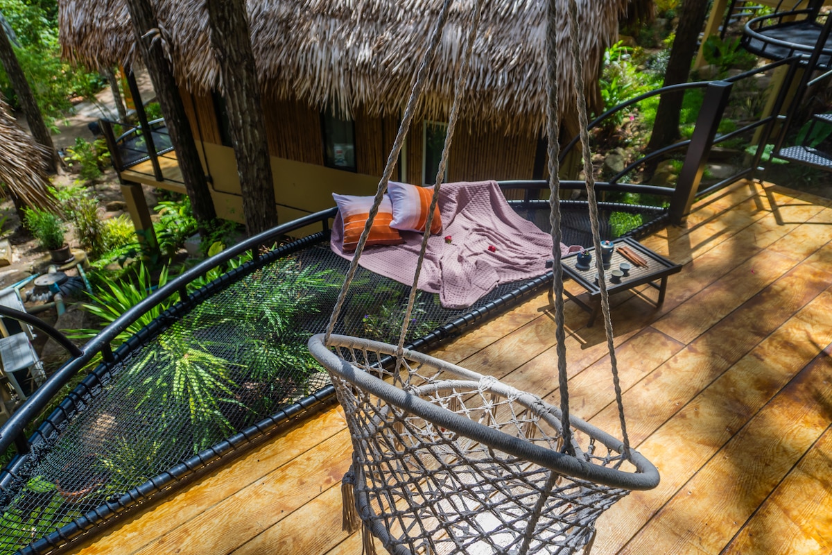 Wellness House & Community & Sauna is co-living: yoga, sauna, friendly vibe, vegan space. Eco-friendly rooms have bathtubs, AC, balconies, unique artworks, hammocks, the swings and boho decorations. This is a place where wild life meets the comfort, where you can also participate in community ceremonies and weekly best Ecstatic Dance on the island. There are many unique, beautiful public zones, the river.. be ready to meet friendly dogs - Rhodesian Rigbacks - who save us at the jungles.