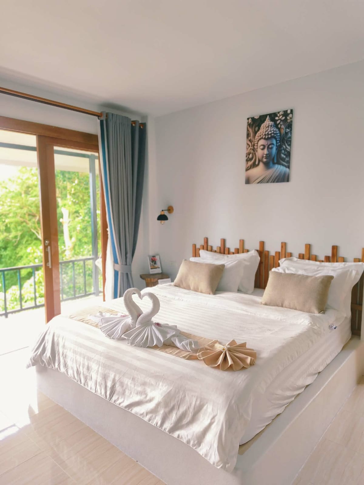 1 phòng ngủ + phòng tắm đầy phong cách cửa sổ và cửa ra vào lớn 55 m2 + Sân thượng nhà bếp ngoài trời được trang bị đầy đủ tiện nghi với bàn ăn để tận hưởng khung cảnh đẹp của vịnh Chaloklum và khu vườn của chúng tôi. Chỗ ở nằm trong một làng chài Chaloklum trong một khu vực rất yên bình đường Haad Khom và chỗ ở có bãi biển riêng cách xa đám đông, có thể ra vào bằng đường bê tông của chính phủ. Giường bổ sung có sẵn theo yêu cầu và tính phí 800 baht mỗi đêm. Giường phụ có kích thước cỡ king nên 2 người lớn có thể ngủ.