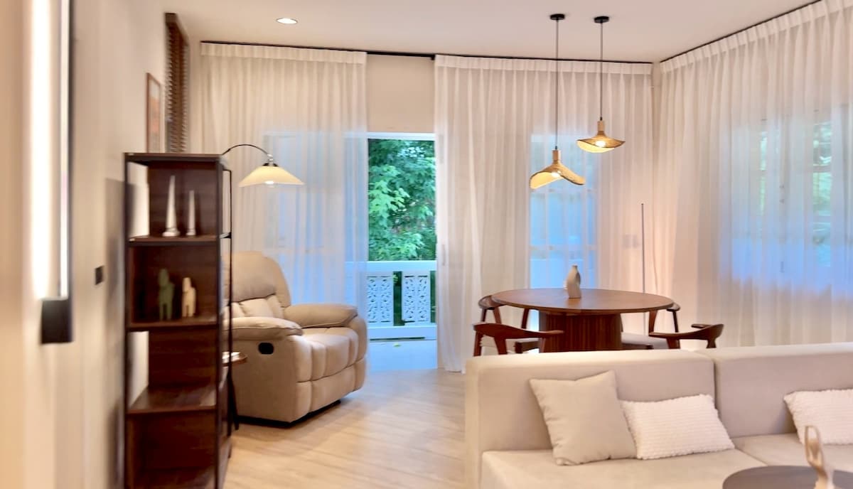 ✨ Biệt thự Tamarind – Chốn nghỉ ngơi ấm cúng 2 phòng ngủ tại Nathon ✨ Chào mừng bạn đến với hòn đảo xa nhà của bạn! Biệt thự 2 phòng ngủ, 2 phòng tắm hoàn toàn mới này được trang bị đầy đủ tiện nghi và hoàn hảo cho thời gian lưu trú dài hạn. Mọi thứ đã sẵn sàng cho bạn 🌴 Tại sao bạn sẽ thích nó • Được trang bị đầy đủ tiện nghi với lối trang trí phong cách, thoải mái • Chỉ 7 phút đến Bãi biển Lipa Noi xinh đẹp, nơi hoàn hảo để đi dạo ngắm hoàng hôn • Một chiếc xích đu ấm cúng dưới gốc cây me lớn, góc đọc sách yêu thích mới của bạn • Sân sau riêng có khu vực BBQ
