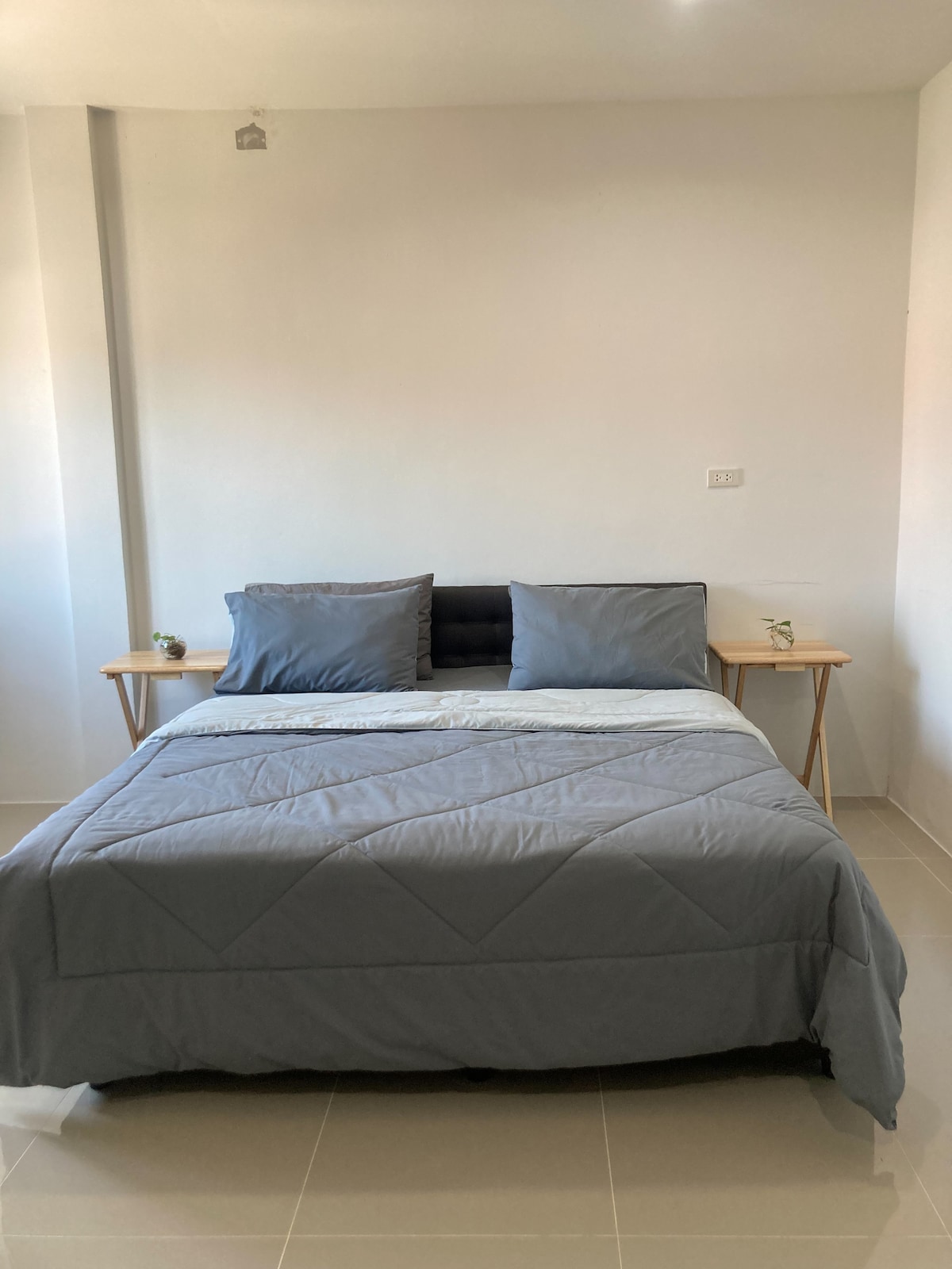 The accommodation is near 7-11, Big C hypermarket, and there's a night market in front of Big C every Tuesday-Friday, about a 10-minute walk away. Snacks, fruit, and drinks are provided as a welcome gift on the first day. Six bottles of drinking water are provided daily. Games and board games are available to play. One motorbike is available for free use.