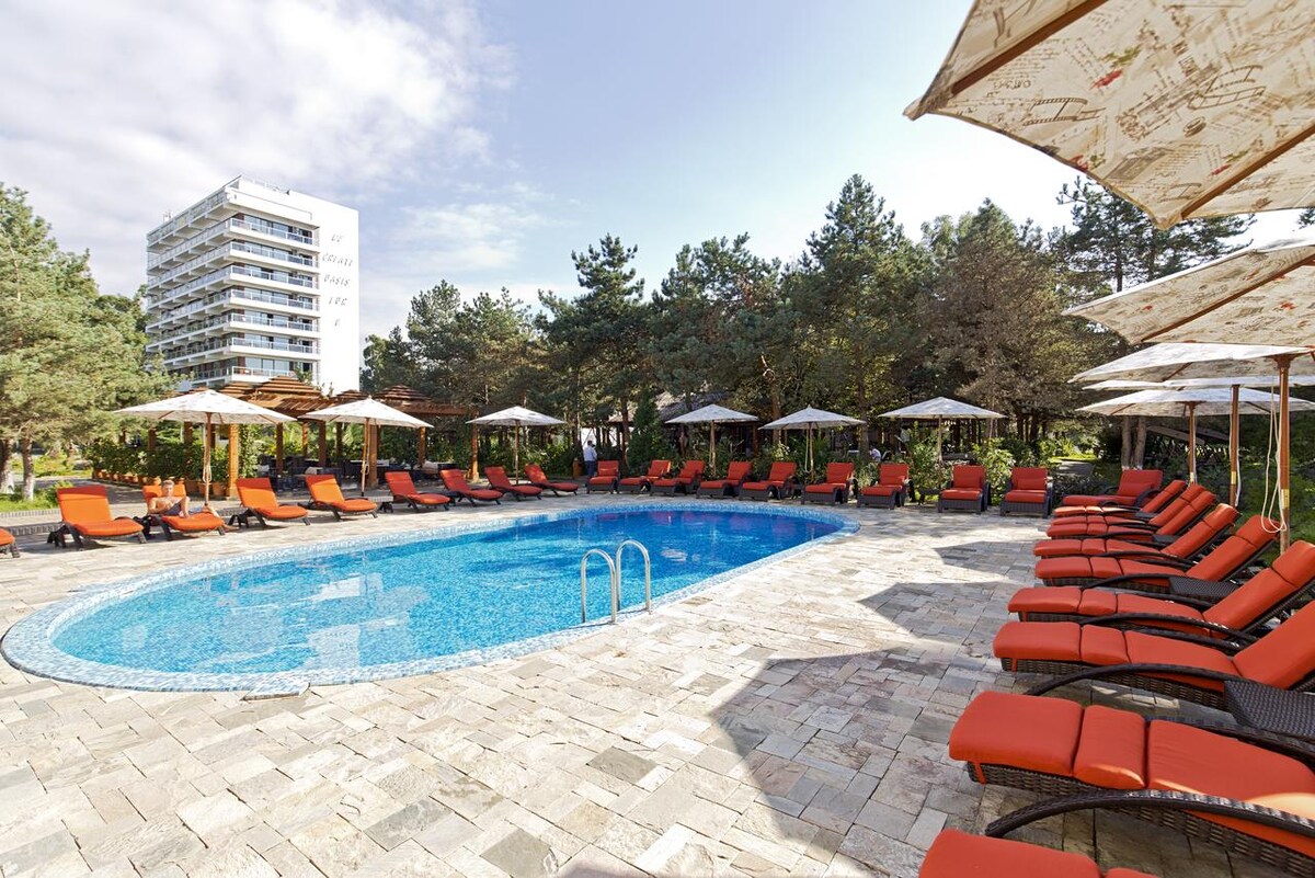Căn hộ 2 phòng ( 1 phòng ngủ biệt lập) tại Dreamland Oasis ở Chakvi. Căn hộ nằm trong khách sạn 5 sao - Dreamland Oasis ở lãnh thổ Chakvi (cách Batumi 15 phút). Vị trí chính xác - khu N9, ngay đối diện với hồ bơi lớn nhất mới được xây dựng vào năm 2021. Các phòng đối diện với khu vườn xinh đẹp nên không có tiếng ồn từ hồ bơi. Căn hộ được trang bị đầy đủ mọi thứ cần thiết cho kỳ nghỉ hoàn hảo.