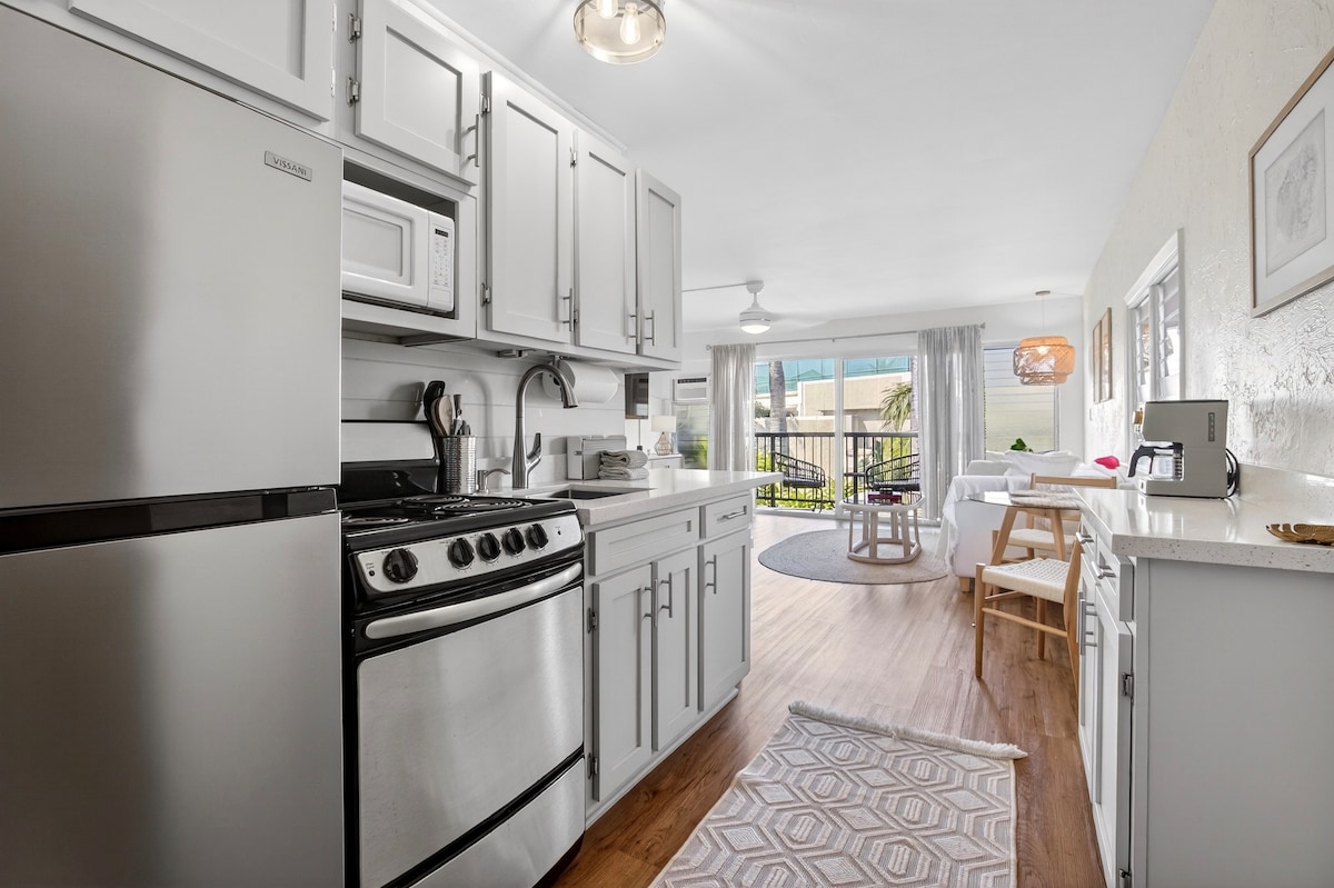 Remodeled ground floor, corner unit in exclusive Bld 11. Steps from beach! Whole home A/C (dual split in living room & window unit in bedroom). New cal king bed, queen sleeper sofa & mini twin in the living room. Sleeps up to 5. Super fast wifi. Private lanai steps out to expansive gardens & Twin Bridges. New living & dining furniture! 65” Smart tv. Unit is supplied w/extra amenities, suggested experiences & babysitting recommendations around the island to offer a fantastic & unforgettable stay!