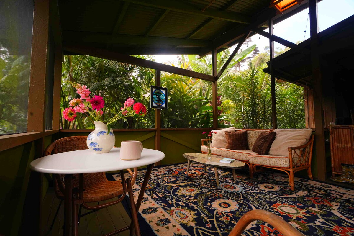 Trong Đai cà phê Kona, đây là một trang trại cà phê rộng 8 mẫu với một số ngôi nhà, bao gồm một lán cà phê gỗ mộc mạc, là không gian chính cho khách. Không gian nhẹ nhàng và thoáng mát, với nghệ thuật từ khắp nơi trên thế giới, nhạc cụ và động vật thân thiện ngoài trời. Chúng tôi đang ẩn mình trên một con đường lộng gió phía trên Vịnh Kealakekua và Đài tưởng niệm Thuyền trưởng Cook, gần nơi lặn với ống thở/chèo thuyền kayak tốt nhất.