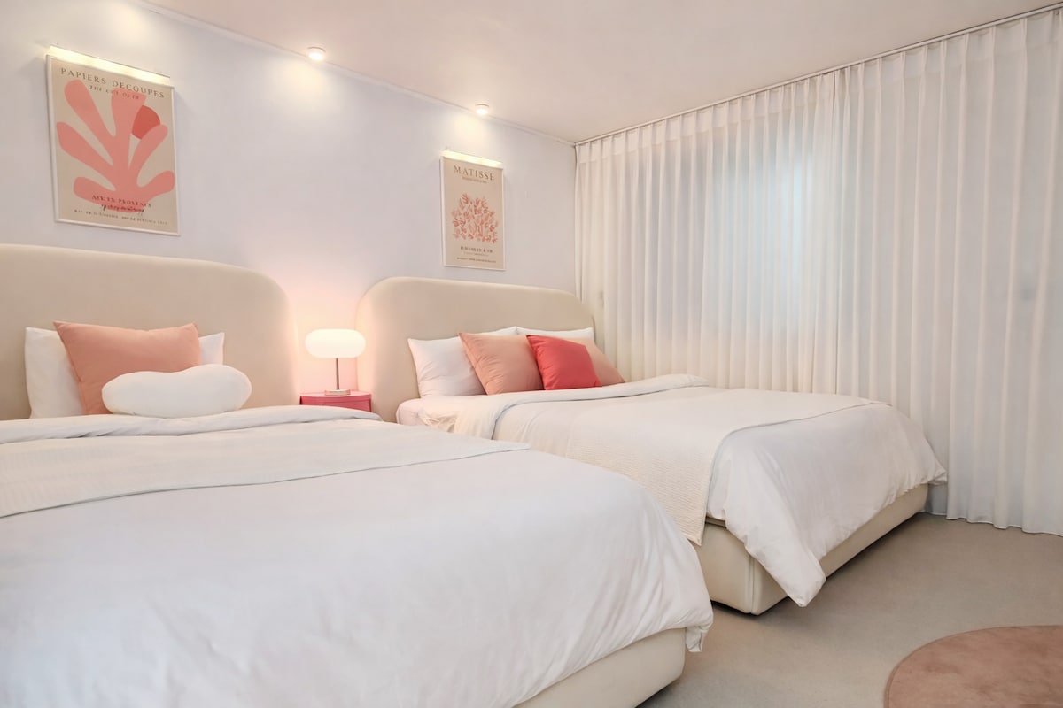 Ga Kondeuk 6 phút | 2 phòng cho 4 người · 3 giường · Chỗ ở yên tĩnh · Giường khách sạn · Tâm hồn màu hồng