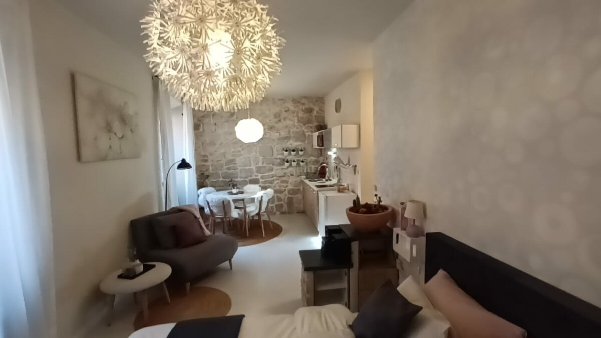 Modern comfort meets historic charm at Studio Nonna. This brand-new, ground-floor retreat features original stone walls and offers rare, stair-free access in the heart of Korčula. Perfectly situated, you are just a 4-5 minute stroll from the ferry port, bus station, and the vibrant Old Town. All within walking distance to the nearest beaches, supermarkets, bakeries, banks, pharmacy, taxi boats, shops, wine and tapas bars, arts venues, historical monuments etc.