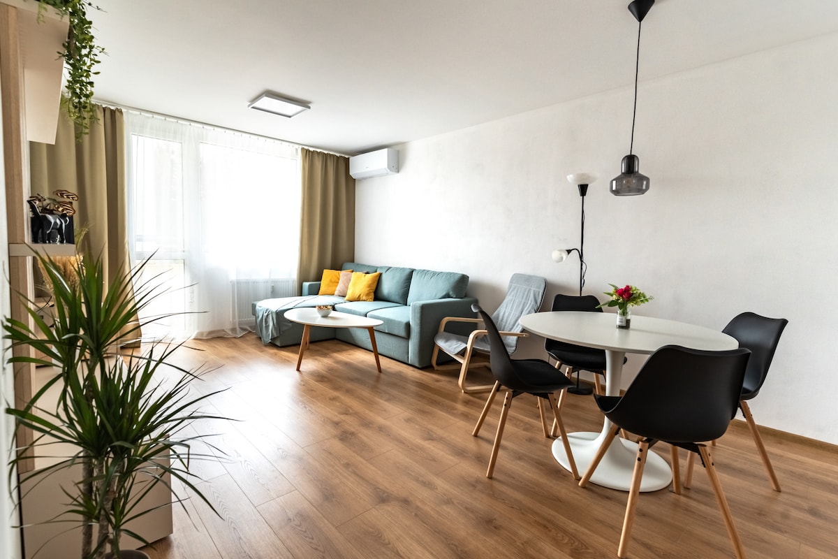 Căn hộ đẹp gần trung tâm thành phố (10 phút đi bộ) với 3 ban công có tầm nhìn toàn cảnh thành phố và các ngọn núi xung quanh. Hai phòng ngủ riêng biệt với giường đôi, rất nhiều không gian lưu trữ. Yên bình và yên tĩnh, gần gũi với thiên nhiên, nhưng cũng chỉ cách trung tâm thành phố 10 phút đi bộ, 15 phút là Quảng trường SNP, 7 phút là Terminal Shopping và bến xe/ga tàu. Cửa hàng tạp hóa chỉ cách 100 m. Bãi đậu xe không phiền phức, ngay cạnh tòa nhà với giá 3 EUR/ngày. Chỉ cách Airbnb của bạn 200 m cũng có bãi đậu xe miễn phí