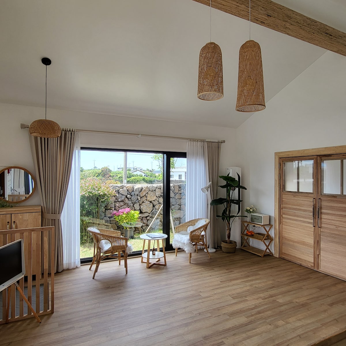 Nhà của chúng tôi nằm ở giữa phía nam đảo Jeju. Cách biển 3 đến 4 km và mất khoảng 5 phút để di chuyển bằng ô tô. Bãi biển cát đen Gongcheonpo gần đó và là một bờ biển nhỏ không được nhiều người biết đến. Nước Yongcheon được gọi là Gongsamie ở giữa bờ biển đang chảy, vì vậy nước đá mát mẻ và Bạn có thể tận hưởng biển cùng một lúc. Đây là địa điểm tốt nhất để đi du lịch đến Hallasan và Oreum. Bạn cũng có thể dễ dàng đến Seongpanak, Upper Seoreum, Yeongsil Course và nhiều oreums ở phía đông. Vì nó nằm ở trung tâm phía nam của Jeju, bạn có thể cảm nhận bầu không khí và thư giãn của vùng nông thôn, và bạn có thể thức dậy vào buổi sáng với âm thanh của những con chim xinh đẹp. Đối với những người mệt mỏi với sự ồn ào của thành phố, nó phù hợp để chữa bệnh và đi. Đây là một địa điểm mà bạn cũng có thể đi đến các khóa học du lịch phía đông và phía tây của Seogwipo, vì vậy bạn có thể lên kế hoạch cho một chuyến đi thú vị. Bữa sáng được phục vụ lúc 8:30 sáng và bữa sáng miễn phí.
