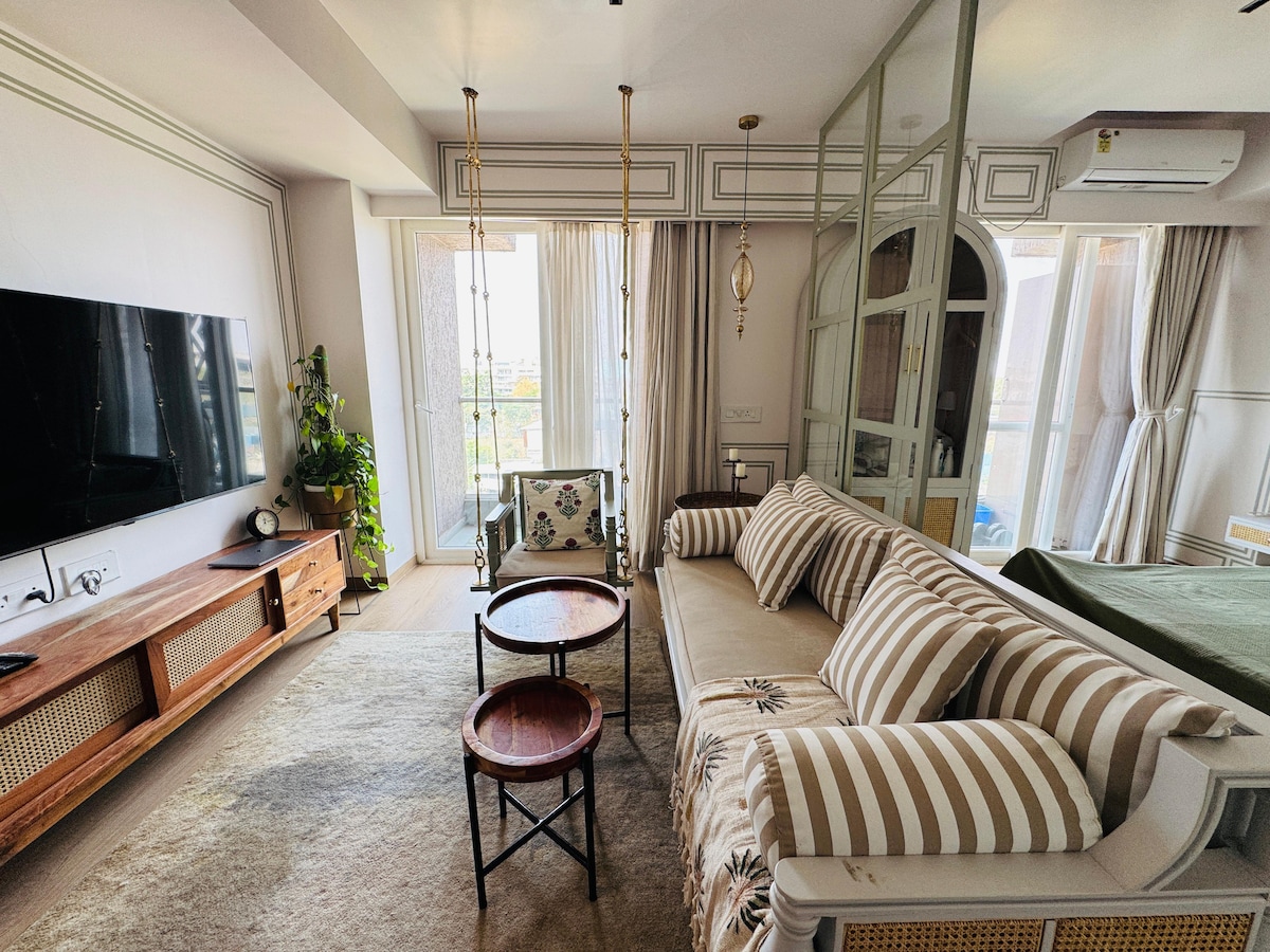 Welcome to our Stylish and beautifully designed home – your perfect getaway in the heart of koregaon park! Our chic and cozy 1 bedroom apartment offers minimalist design, natural light, spacious interiors and is thoughtfully furnished to make your stay as relaxed as possible. Relax in the living area/balcony, perfect for unwinding after a day of exploring. Located just a min walk from restaurants, cafés in lane no 5,6 & 7 of koregaon park, Osho, Gardens, hospital and etc.