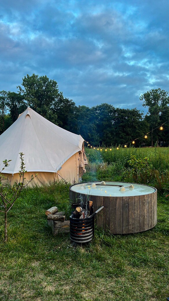Op één van de mooiste plekjes van de camping, midden in het jonge voedselbos, staat deze back to nature – tent. Een unieke locatie voor de echte avonturiers! Dé plek dus voor een ultieme natuurbeleving met uitzicht over landerijen. Door de ligging waan je je even alleen op de wereld en daarom adviseren wij je om ook echt even offline te gaan. De fijne Bell tent is sfeervol ingericht en biedt veel privacy. Geniet van alle natuurlijke geluiden of rust lekker uit in de naastgelegen hangmat.
