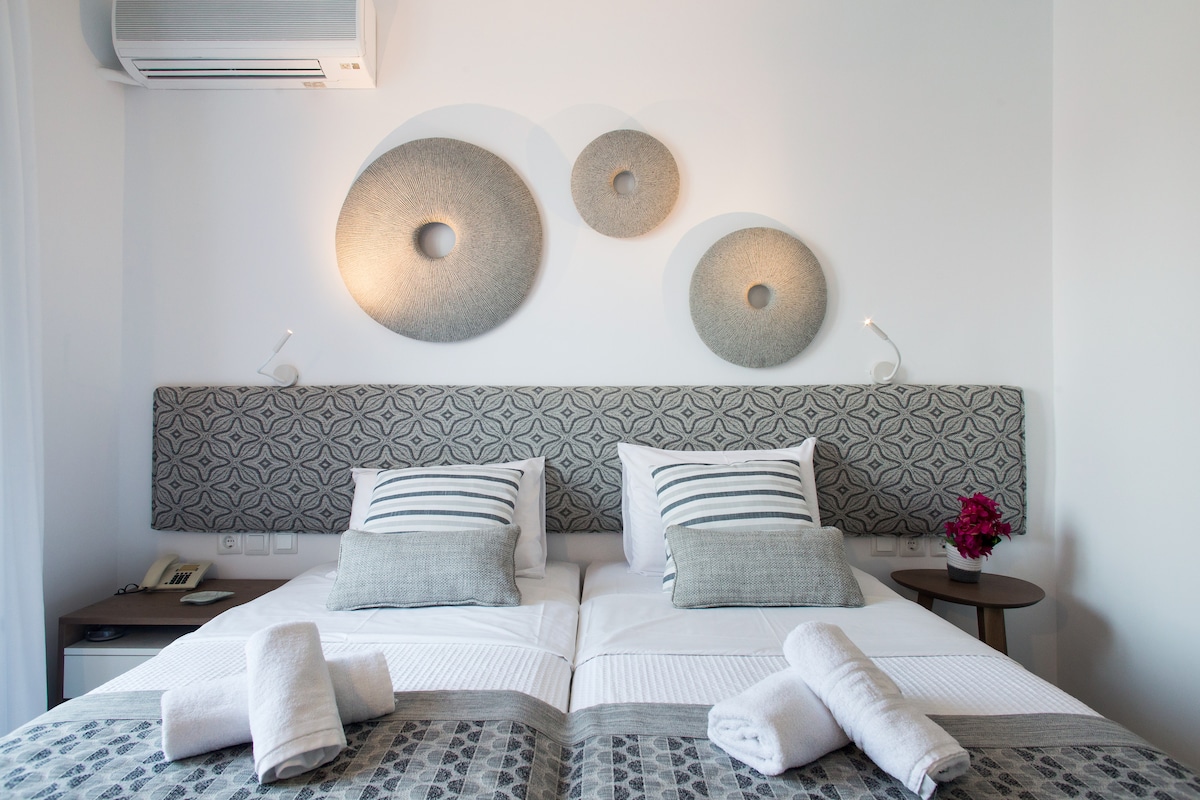Phòng máy lạnh được cải tạo hiện đại, với hai giường đơn thoải mái (giường đôi) hoặc một giường đôi (siêu king – kích thước), với nệm giải phẫu và không gây dị ứng và gối Media Strom. Chỗ ở có cách âm, cách nhiệt và rèm chắn sáng. Phòng tắm có buồng tắm đứng. Từ ban công của bạn, bạn có thể tận hưởng khung cảnh độc đáo nhìn ra Biển Myrtoo. - 16 m2
