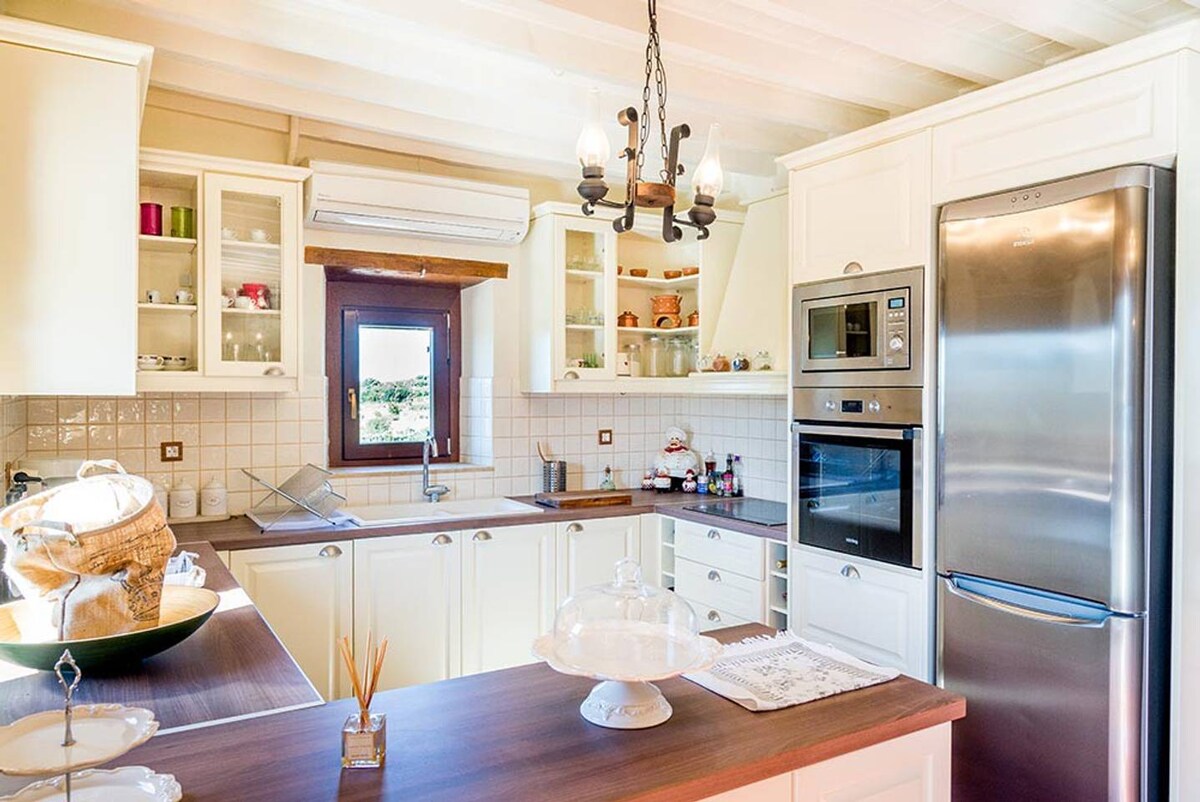Chào mừng bạn đến với biệt thự mơ ước của bạn, được xây dựng tiếp xúc với một khối đá! Chỗ ở này có hai phòng ngủ với phòng tắm khép kín riêng. (1 với giường sofa bổ sung) Biệt thự nằm trên một khu đất rộng 6000 m2 đầy cây thông và rừng ô liu. Một vài bước dẫn xuống bãi biển hẻo lánh của bạn. Nhà bếp và phòng ăn trong aithrio có tầm nhìn toàn cảnh biển. Không gian ngoài trời 120 m2 bao gồm khu vực tiếp khách được bảo vệ bởi một mái vòm che nắng, ghế tắm nắng, một nơi ăn uống ngoài trời,đồ nướng, vòi sen