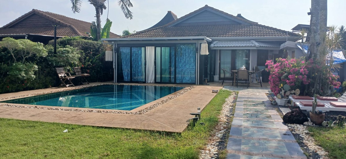 🌴 Paradise Retreat với hồ bơi riêng Thoát khỏi biệt thự 2 phòng ngủ, 2 phòng tắm sang trọng của chúng tôi nép mình trong trung tâm thanh bình, chỉ cách Bãi biển Klongmoung và công viên quốc gia Khao Ngorn Nark đầy cảm hứng 10 phút.(Núi Rồng.) Vườn Lush & Khu vực ăn uống ngoài trời Bãi đỗ xe riêng Cửa hàng tiện lợi và các nhà hàng khác nhau. Tận hưởng sự yên tĩnh với ốc đảo riêng của bạn, ngâm mình trong bể bơi trong khi tận hưởng với bể sục. Nắm bắt văn hóa địa phương.