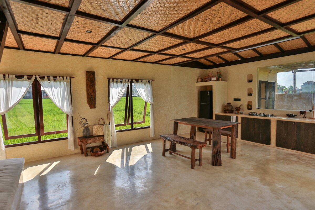 Joglo ấm cúng trên cánh đồng lúa với tầm nhìn ra biển - Padma