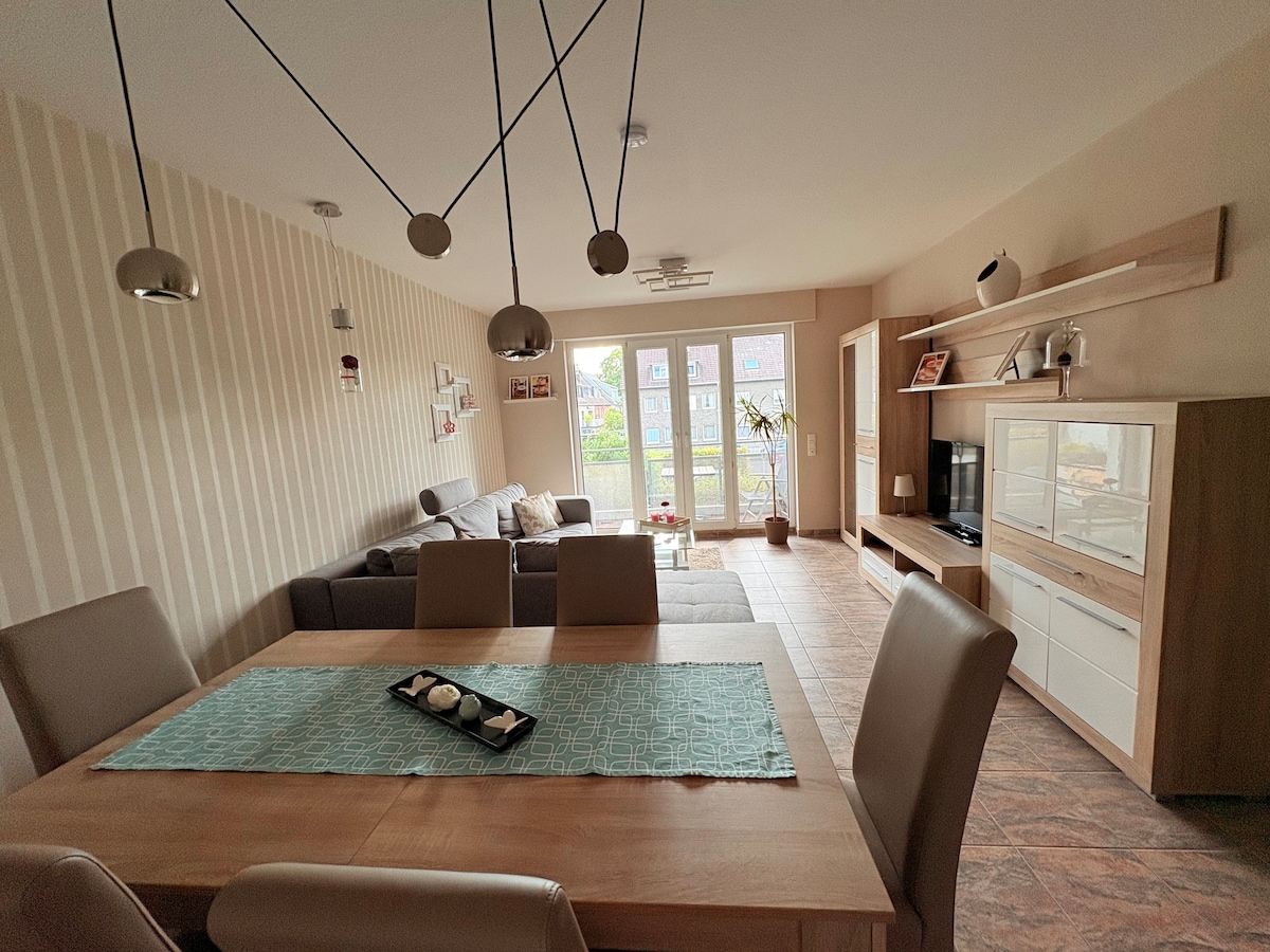 Căn hộ 65 m² đẹp ngay trung tâm Duisburg với ban công rộng 🏖️ (bao gồm khu vực chỗ ngồi & Strandkorb) và kết nối hoàn hảo với Trung tâm Duisburg, Düsseldorf & Messe Düsseldorf 🚆 Những điểm nổi bật: Trạm U-/xe điện (Platanenhof) 200 m (U79/903) 🚋 Trung tâm nhưng yên tĩnh 🌳 Hệ thống sưởi dưới sàn 🔥 Nhà bếp đầy đủ tiện nghi 🍽️ Không gian văn phòng tại nhà 💻 Phòng tắm vòi sen 🚿 Quầy bar trong phòng 🍷 TV thông minh với Netflix 📺 Lý tưởng cho các chuyến đi thành phố hoặc đi công tác ✨ Trạm sạc nhanh cho xe điện ngay trên đường phố ⚡🚗