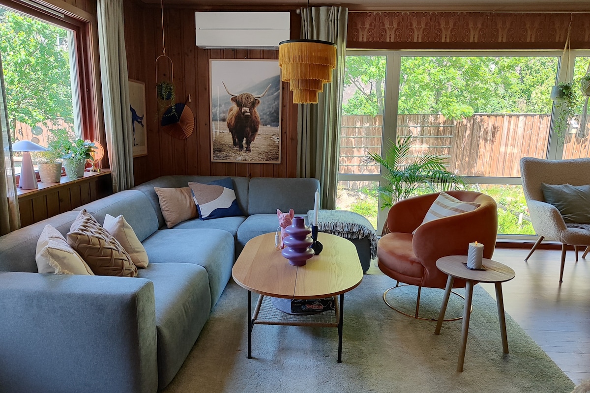 Nhà riêng rộng rãi 3 tầng cho tối đa 8 khách Ở cùng nhau trong không gian riêng tư rộng 152 m² trên ba tầng — lý tưởng cho các gia đình, bạn bè và các chuyến thăm Dyreparken. • 4 phòng ngủ (3 giường đôi + 2 giường đơn) • 2 phòng khách • Bếp đầy đủ tiện nghi • Sân thượng và ban công riêng • Phòng giặt là • Wifi nhanh và bãi đỗ xe miễn phí • Đã bao gồm khăn trải giường và khăn tắm Nằm trong khu vực yên tĩnh của Grim, cách trung tâm thành phố 10–15 phút đi bộ và cách Dyreparken và các bãi biển 10 phút lái xe. Không gian, sự riêng tư và thoải mái trong một ngôi nhà.