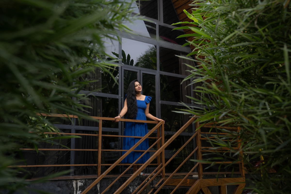 Cabin gỗ ấm cúng ở Wayanad với giường cỡ king, ghế sofa và ban công riêng nhìn ra cây xanh tươi tốt. Tận hưởng phòng tắm có đèn LED với vòi hoa sen, nước nóng 24/7 và hồ bơi vô cực chung với tầm nhìn ra núi. Lý tưởng cho các cặp đôi và gia đình, cabin pha trộn sự quyến rũ mộc mạc với sự thoải mái hiện đại. Bao gồm bữa sáng, Wi-Fi và quyền sử dụng các điểm tham quan gần đó. Trẻ em 6–12 tuổi: 600 INR, trên 12 tuổi: 1000 INR. Hồ bơi: 8:30 sáng – 7 giờ tối, trả phòng: 11 giờ sáng.