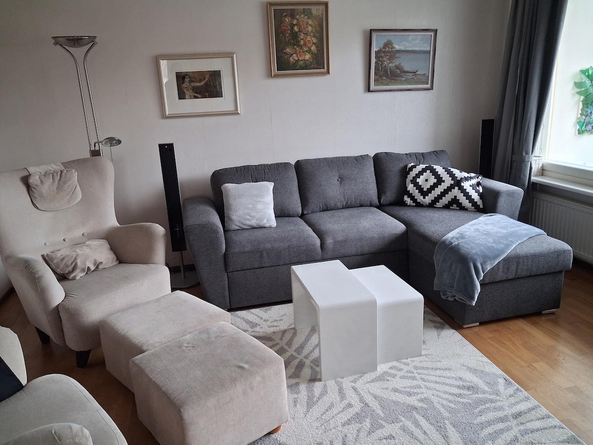 Tận hưởng thời gian lưu trú đầy phong cách tại ngôi nhà nằm ở trung tâm này. Căn hộ nằm ở tầng 5 trên cùng của một ngôi nhà thang máy. Tất cả các dịch vụ ở trung tâm thành phố đều nằm trong khoảng cách đi bộ. Cách ga tàu và trung tâm du lịch chưa đầy năm phút. Căn hộ sạch sẽ và mới cải tạo. Phòng ngủ có giường đôi Asko Bonnell chất lượng cao với nệm xốp thông minh. Ngoài ra, một chiếc ghế giường có thể trải ra trong phòng khách là 80x 195cm, chúng tôi sẽ chuẩn bị theo yêu cầu của bạn.