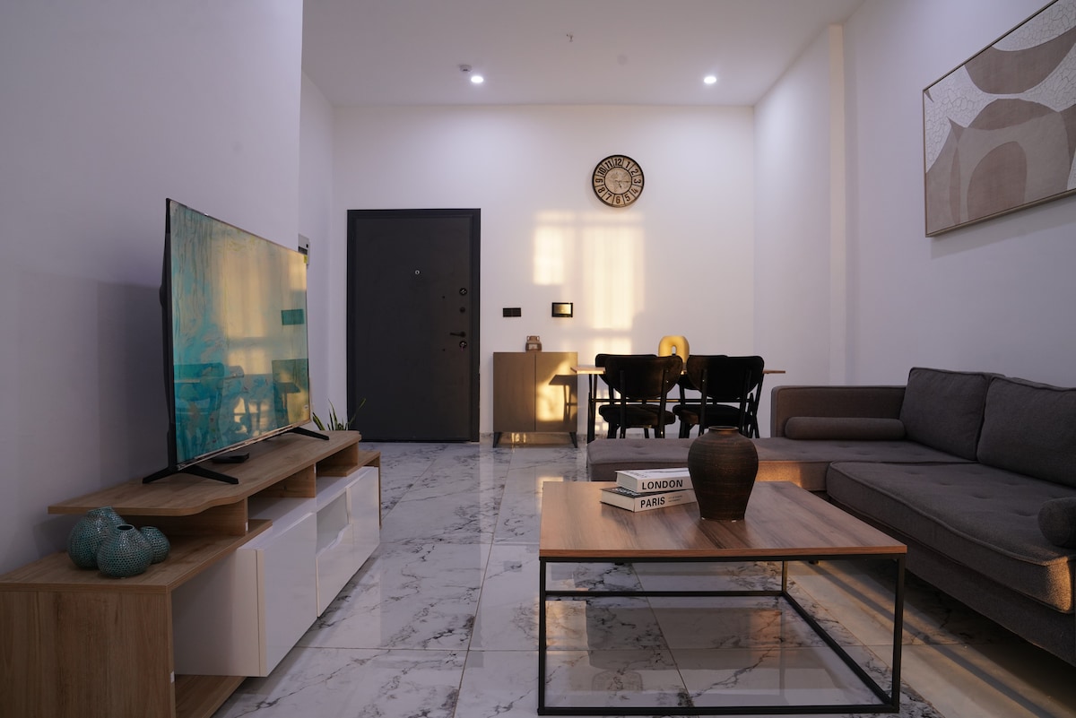 -24/7 Security - 24/7 uninterrupted electricity supply - King-size bed - AC in the living room & bedroom - Coffee machine and all kitchen utilities - 5-minute drive from the airport -52” QLED smart TV - 5-minute walk to Gulan Mall Compound includes: - Swimming pool with sauna steam room & gym - 24/7supermarket - Six restaurants,cafés & a bakery all providing free delivery to the apartment - Women's&Men's Salon - Pharmacy - 24/7 service - Paid laundry service on request - Garden& walking track