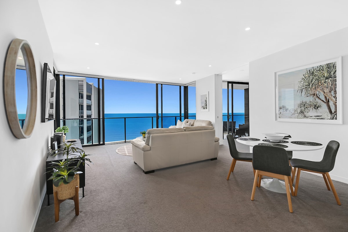 Gold Coast luxury accomm. at it 's best! Nằm trên tầng 31, căn hộ penthouse 3 phòng ngủ có kích thước rộng rãi của chúng tôi với hai khu vực sảnh riêng biệt mang đến tầm nhìn 270° tuyệt vời, bao quát toàn cảnh Surf & Skyline từ Kirra đến tận phía Bắc. Hoàn toàn mới và được thiết kế đẹp mắt. WIFI, Ducted Air, Netflix, TV trong tất cả các phòng ngủ, 2 bãi đỗ xe, nhà bếp đầy đủ tiện nghi và giặt ủi. Đi dạo một quãng ngắn đến Surf Beach, Public Trans. Pac Fair, The Star, Conv. Cntr và các lựa chọn ăn uống tuyệt vời. Sống trong mơ!