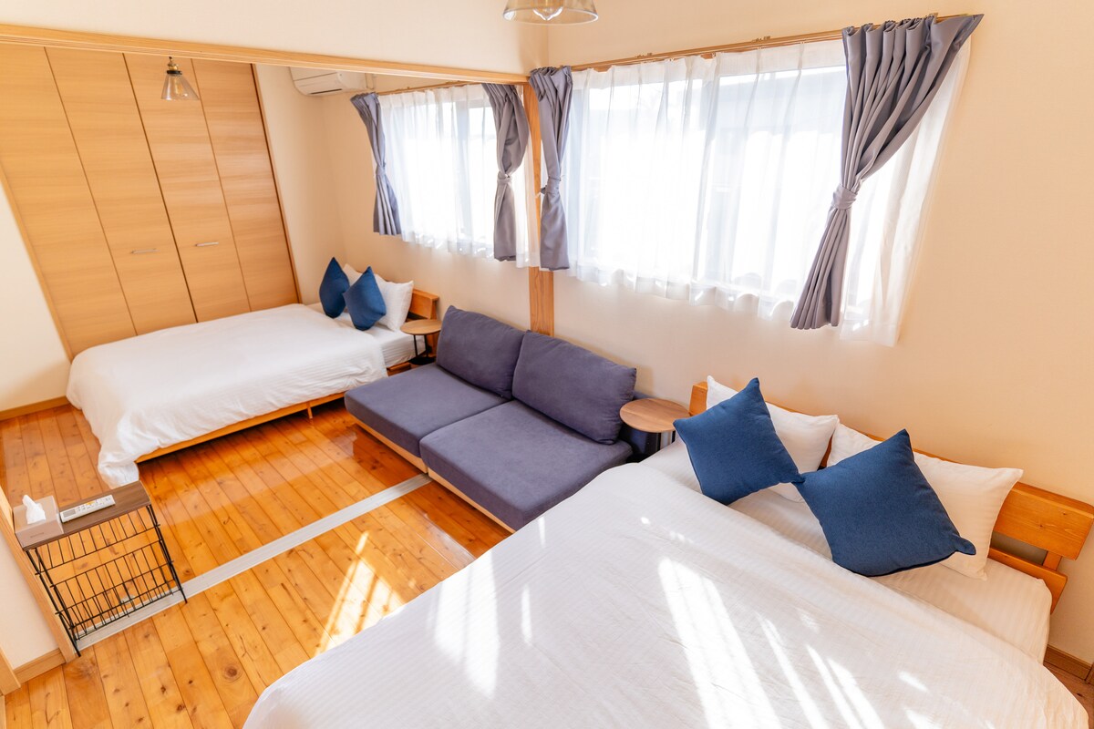 Đây là một ngôi nhà hiện đại kiểu Nhật cho thuê trong khu dân cư yên tĩnh cách Ga Kushima khoảng 8 phút đi bộ. Nơi này có thể chứa tối đa 6 khách, hoàn hảo cho các chuyến đi gia đình, chuyến đi theo nhóm và chuyến đi lướt sóng. Ở tầng một, có một phòng khách và phòng ăn rộng rãi, một phòng theo phong cách Nhật Bản, một nhà bếp được cải tạo và một phòng tắm với nồi hơi hoàn toàn tự động. Có các phòng theo phong cách Nhật Bản và 2 phòng theo phong cách phương Tây ở tầng hai, vì vậy bạn có thể có một khoảng thời gian thư giãn. Có Wifi, bãi đỗ xe miễn phí trong khuôn viên, Ngoài ra còn có các siêu thị, nhà hàng và bãi biển gần đó, khiến nơi đây trở thành một căn cứ thuận tiện để tham quan ở Kushima và Nichinan Coast Drive.Các điểm lướt sóng phổ biến như Kogaura và Yukishima nằm rải rác gần đó. Sau cơn sóng, bạn có thể thưởng thức các món chim tươi và shochu trong một izakaya nơi người dân địa phương tụ tập. Sau khi bạn rời đi, hãy tận hưởng thời gian thư giãn trong khi trò chuyện với bạn bè trong phòng khách. Chúng tôi cung cấp mức giá đặc biệt trong thời gian trước khi mở cửa. Tận hưởng thời gian thư giãn trong khi cảm nhận không khí ấm áp của địa phương.