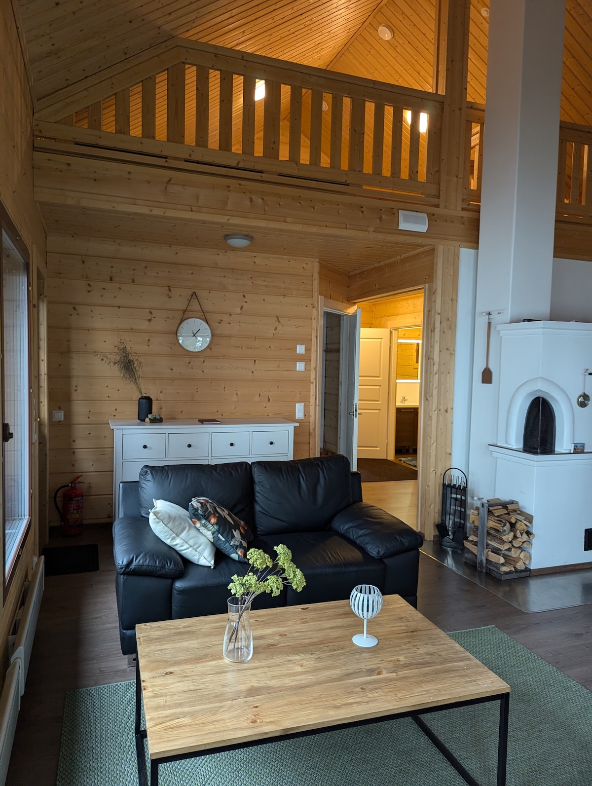 Nhà gỗ đôi ấm cúng gần trung tâm Ruka. Nhà bếp có tất cả các thiết bị cần thiết (máy rửa chén, bếp từ, lò nướng, lò vi sóng) và bộ đồ ăn đầy đủ. Ở tầng dưới của căn nhà có phòng khách bếp với không gian mở và một phòng ngủ với giường đôi. Tầng trên có các khu vực ngủ riêng biệt ở hai đầu. Một giường sofa mở rộng và hai giường riêng biệt. Kết nối Wifi, máy bơm nhiệt không khí, bộ sạc 11kw với đầu nối loại 2 (điện được tính riêng). Một quãng đường ngắn từ sân của cabin đến đường trượt tuyết!