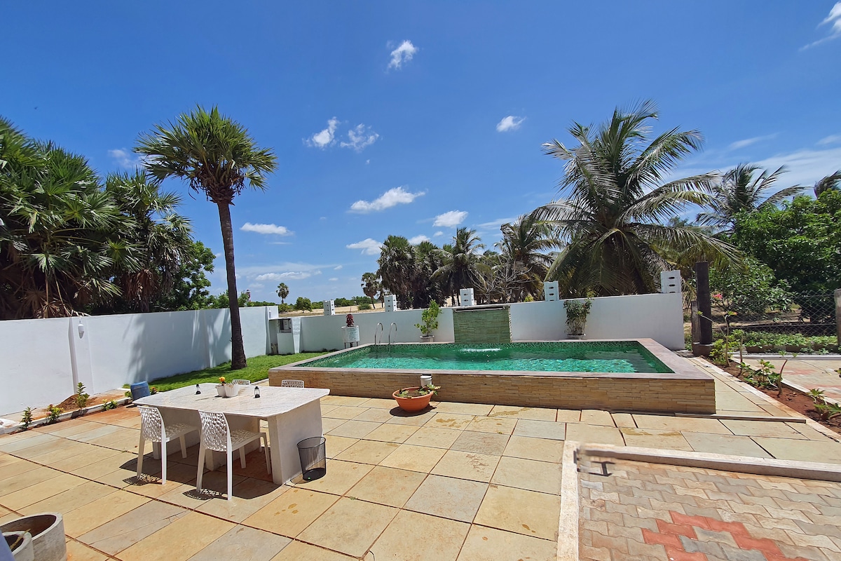 Nhà riêng trên bãi biển với hồ bơi được bao quanh bởi vùng nước phía sau, bãi biển, pháo đài Alamparai thế kỷ 17h lịch sử và nhà đèn Kadapakkam. Tận hưởng cuộc sống nông thôn mộc mạc và thư giãn với tiếng sóng vỗ. Sở hữu sự riêng tư của bạn như một cặp đôi hoặc một nhóm bạn bè. Edaikazhinadu được gọi là "LITTLE KERELA" 40 phút lái xe đến Pondicherry.