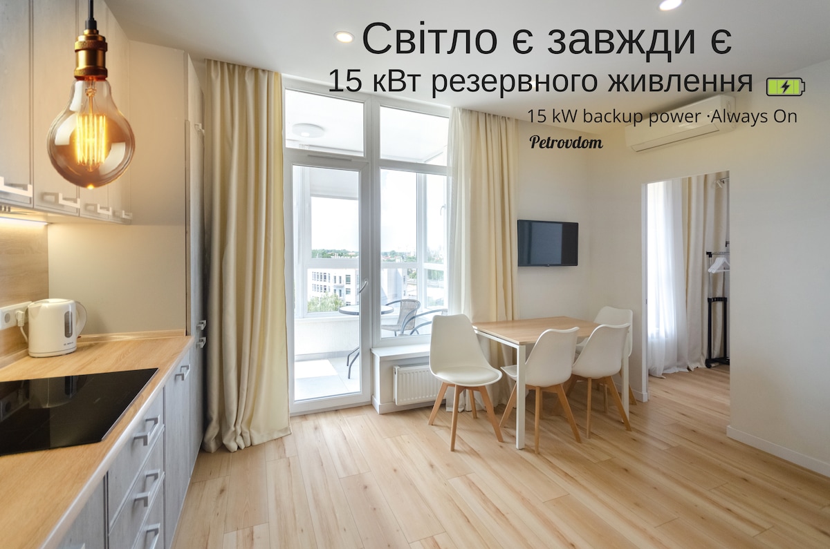 Nguồn điện dự phòng! Căn hộ ấm cúng và rộng rãi!