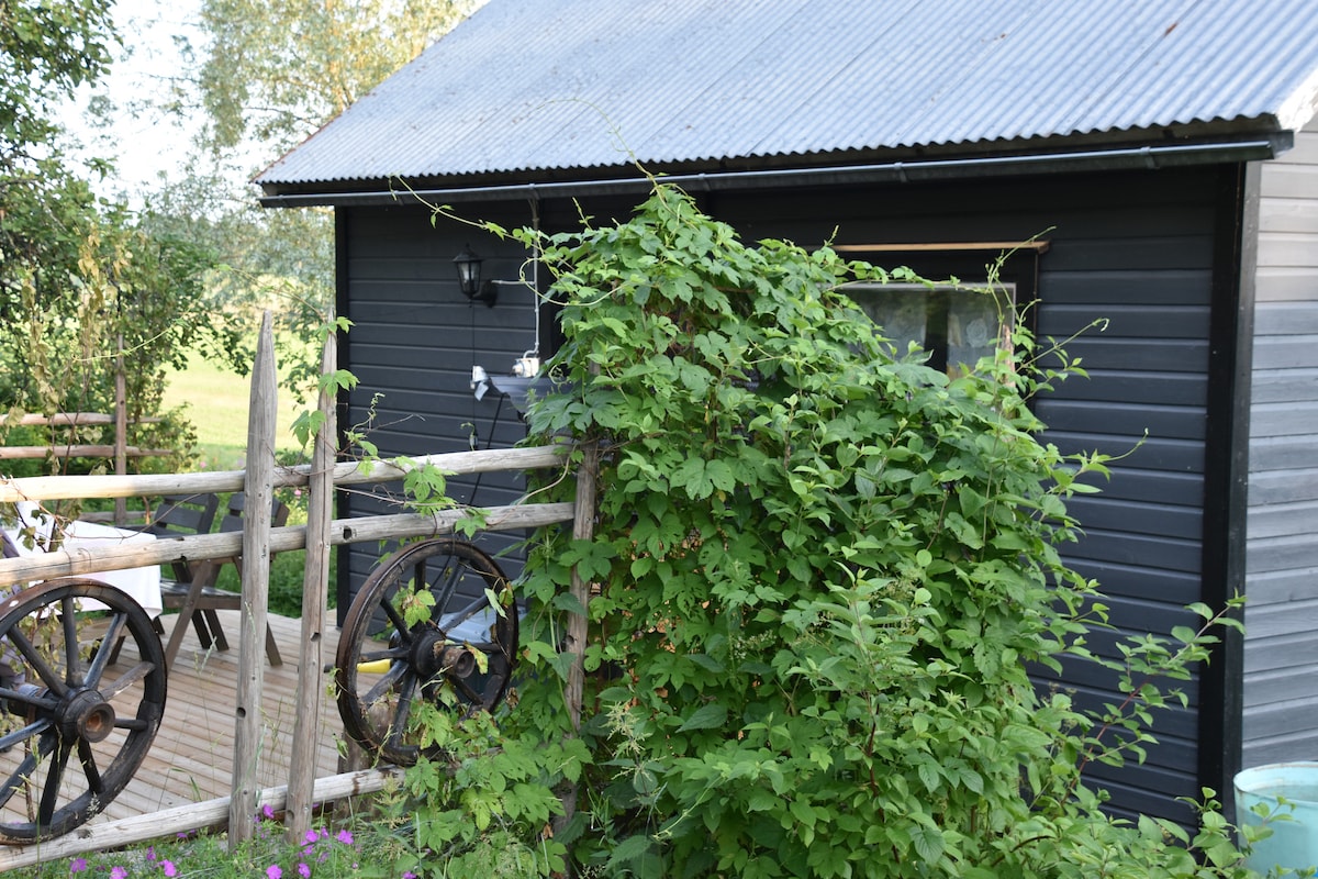 Trong cabin nhỏ này, bạn có thể thư giãn với cả gia đình tại nơi yên bình này. Nó được bao quanh bởi một thiên nhiên tuyệt đẹp và bạn có thể đi bộ đường dài hoặc đạp xe trong các khu rừng và đường xá gần đó. Bạn cũng có thể sử dụng tòa nhà chính khác của chúng tôi. Chúng tôi có phòng tắm vòi sen và bạn có thể thoải mái sử dụng sảnh lớn của chúng tôi nếu nó không được dành riêng cho bất kỳ bữa tiệc hoặc cuộc họp riêng nào. Theo yêu cầu, bạn cũng có thể thưởng thức những túp lều nướng của chúng tôi. Chúng tôi cũng có chợ mini của riêng mình, tại đó bạn có thể mua hàng hóa hàng ngày.