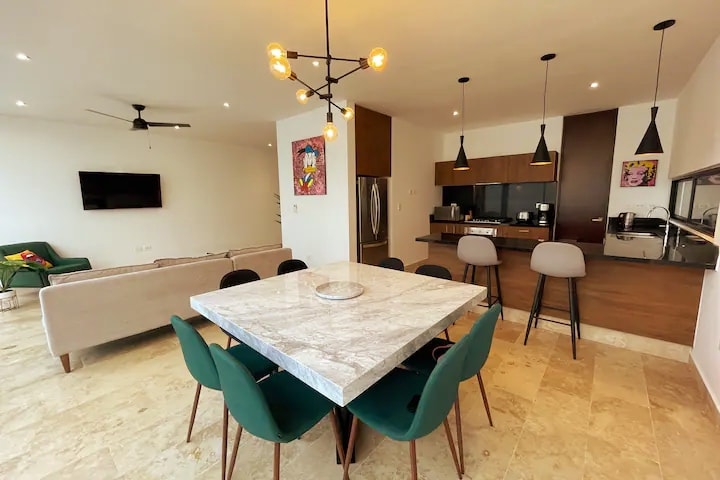 Chào mừng bạn đến với nơi trú ẩn của bạn ở Temozón Norte, một trong những khu vực phát triển nhanh nhất ở Mérida, nơi vẫn giữ được sự yên tĩnh và môi trường tự nhiên. Căn hộ một phòng ngủ của chúng tôi lý tưởng để thư giãn và tận hưởng: nó có giường cỡ king, tủ quần áo, phòng tắm riêng và giường sofa đôi thoải mái trong phòng khách cho khách bổ sung. Tận hưởng hồ bơi riêng của bạn trên sân thượng hoặc tận dụng các tiện nghi của tòa nhà như phòng tập thể dục, hồ bơi chung, công viên thú cưng và phòng tổ chức sự kiện.