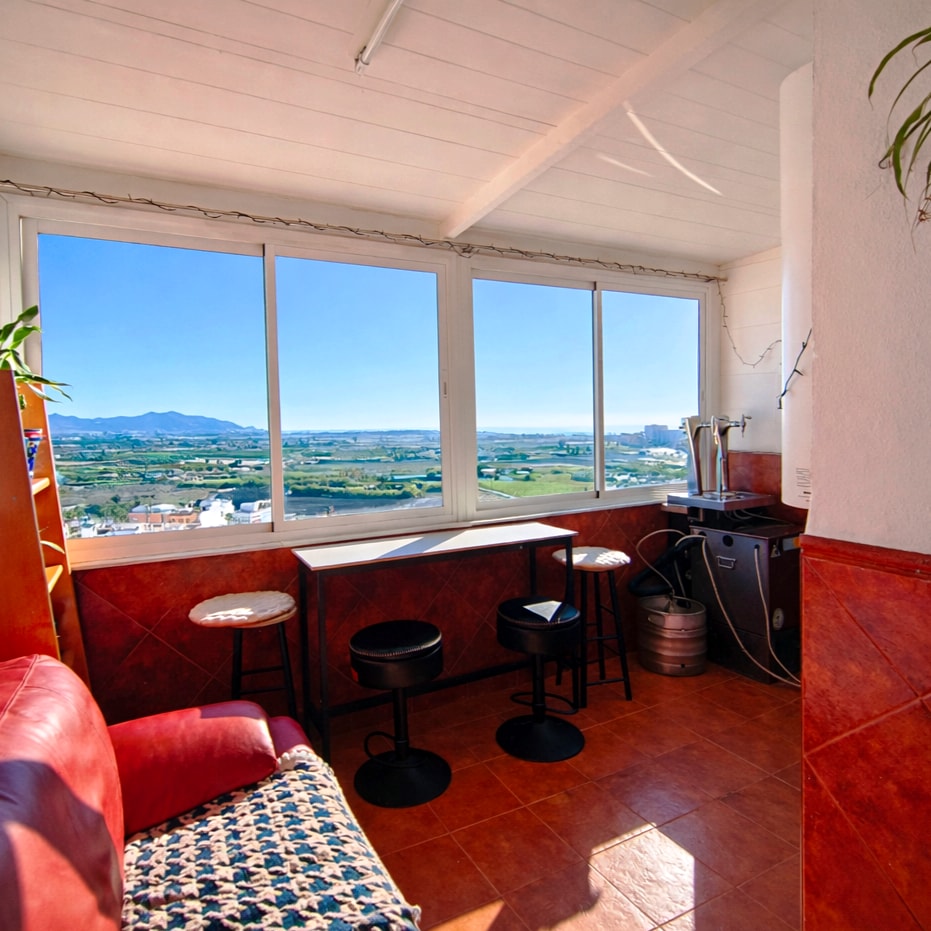 Beautiful Spanish style house, modern equipped with stunning sea views to the shore of Burriana Beach in the east of Nerja. It consists of two bedrooms, one bathroom with walk-in shower, 1 extra toilet as part of the second bedroom, fully equipped kitchen, large salon with full sea views leading onto a very large private terrace where you can dine or sun bathe. The terrace has an electric awning and an outdoor shower offers cooling on a hot summer day.
