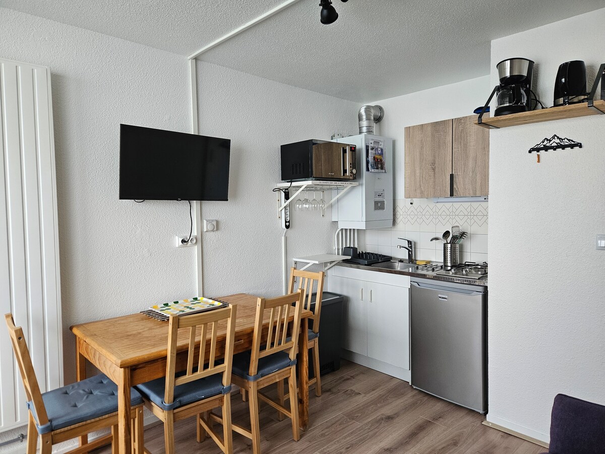 Studio rộng 30m2 ngay trung tâm Mongia, ngủ 4 người. Vào mùa đông, căn hộ nằm ở chân dốc, thang máy trượt tuyết, nhà trẻ và trường dạy trượt tuyết. Vào mùa hè, nó nằm cách gondola Pic du Midi vài mét. Là một người yêu thích xe đạp, Tour de France có thể được nhìn thấy từ ban công. Căn hộ được tân trang lại hoàn toàn này sẽ cho phép bạn sạc pin sau một ngày trượt tuyết, đi giày tuyết, đi giày tuyết hoặc đi bộ đường dài.