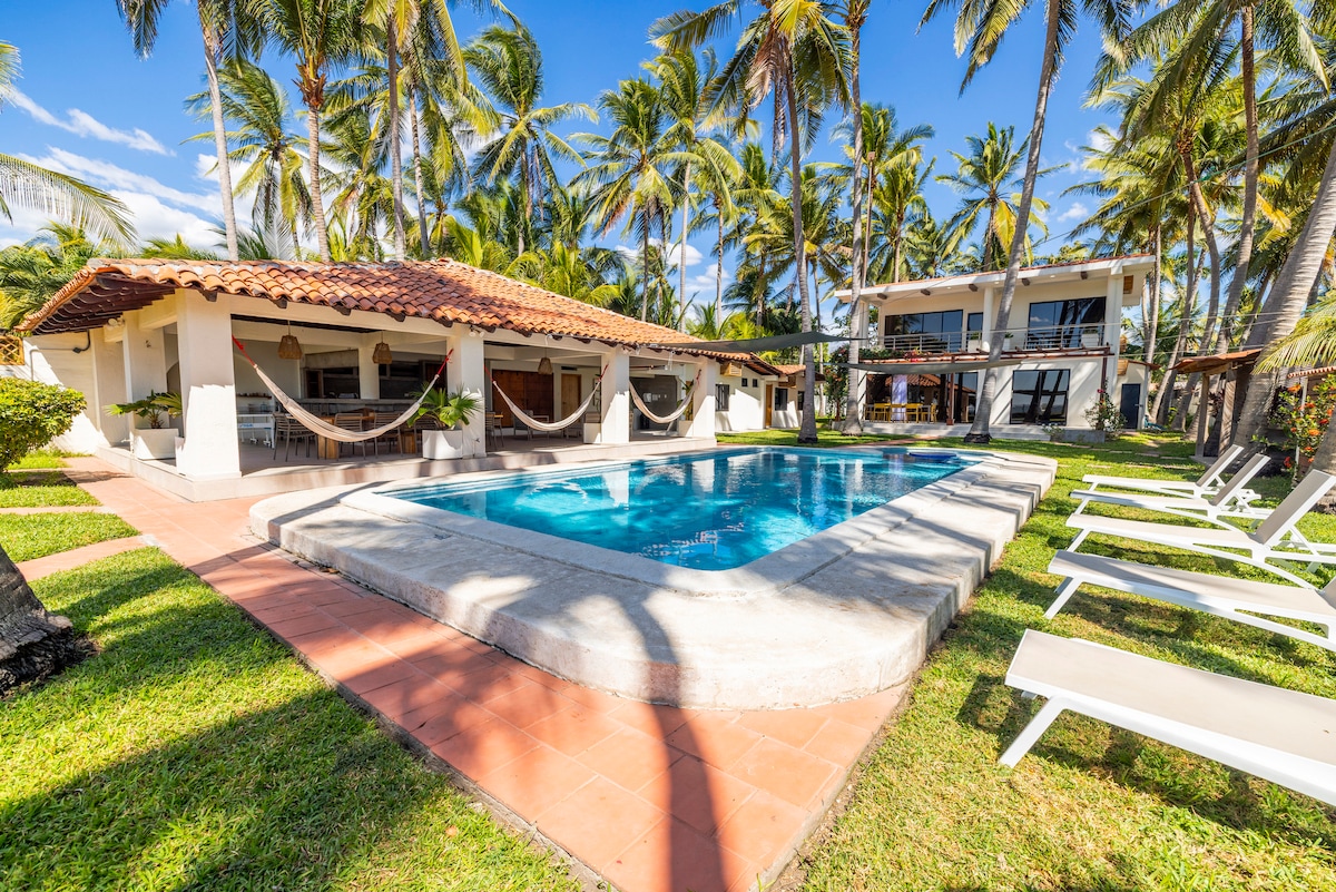 Ngôi nhà bãi biển tuyệt đẹp hướng ra biển. Bao gồm một nhà khách. Nó có 4 phòng ngủ. 3 1/2 phòng tắm, hồ bơi và khu vực võng. Cách sân bay El Salvador 20 phút, cách thành phố Surf 30 phút Nằm trên bãi biển riêng Amatecampo, ngôi nhà xinh đẹp này có bãi cát, biển và cuộc sống sang trọng phong phú. Đóng gói mọi thứ để tạo nên một kỳ nghỉ đáng nhớ, ngôi nhà bên bờ biển tuyệt vời này cũng đi kèm với bãi biển cát rực rỡ ngay trước cửa. Lấy kem chống nắng của bạn và xem qua..