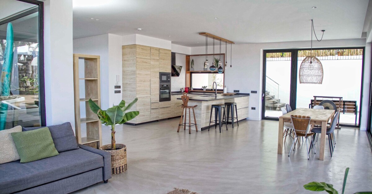 Tropical peaceful Garden near the Sea, Fibre wi fi: Here it is possible to enjoy the silence, the sights to the sea and a garden full of style and captivation. Probably the mostly cosy corner is its elegant swimming pool and the outdoor lounge, inviting to enjoying languidly the sunny winter afternoons and the sunsets during the rest of the year. Amazing pool area. The finca is very close to the famous Playa del Socorro: relaxed atmosphere due to the beatiful sunsets & the Surfers competitions