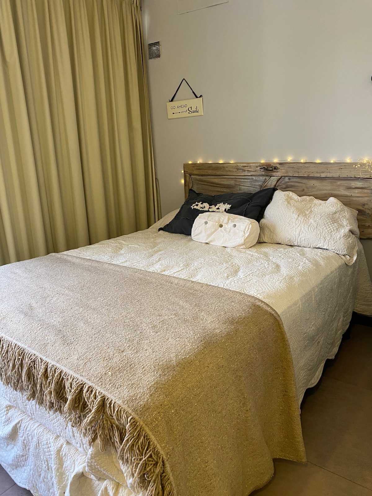 Es un departamento a estrenar, recién terminado. Está a unos 30 minutos del centro yendo caminando y a 10 minutos en vehículo o transporte público. Un barrio tranquilo y agradable. El departamento cuenta con una cama de dos plazas, una de una plaza y un futón que se hace cama. La cocina está totalmente equipada y la cochera cubierta está incluida.