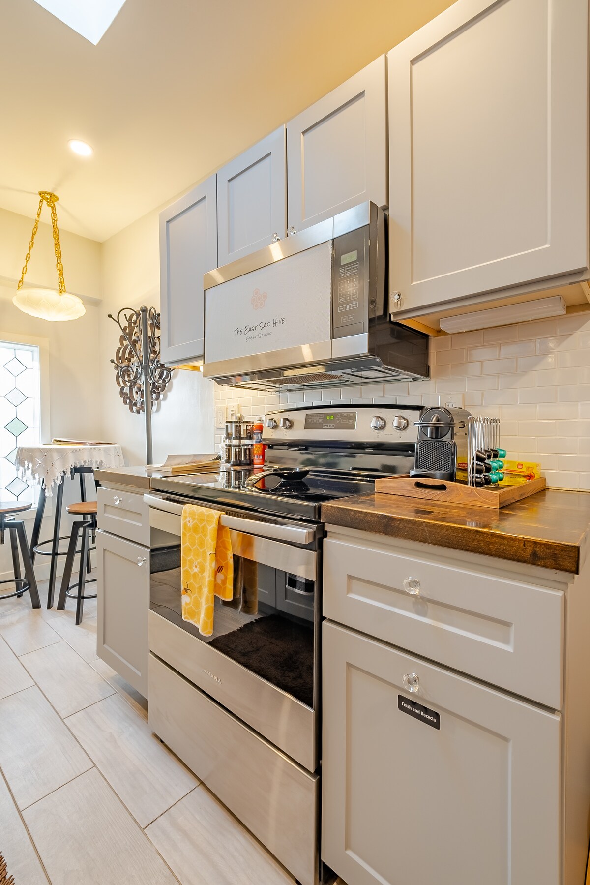 Studio dành cho khách East Sac Hive nằm ở trung tâm khu phố đẹp nhất của Sacramento được xây dựng vào những năm1920 và chúng tôi tự hào chia sẻ thành phố của mình với bạn. Studio của chúng tôi kỳ lạ và ấm cúng, nhưng cung cấp tất cả các tiện nghi bạn mong đợi trong một không gian thoải mái. Studio vi mô rộng khoảng 230 feet vuông và có kích thước hoàn hảo cho hai người lớn hoặc một người lớn và trẻ em. Có lẽ bạn thậm chí sẽ được nhìn thấy hoạt động náo nhiệt của tổ ong đô thị của chúng tôi trên mái nhà!