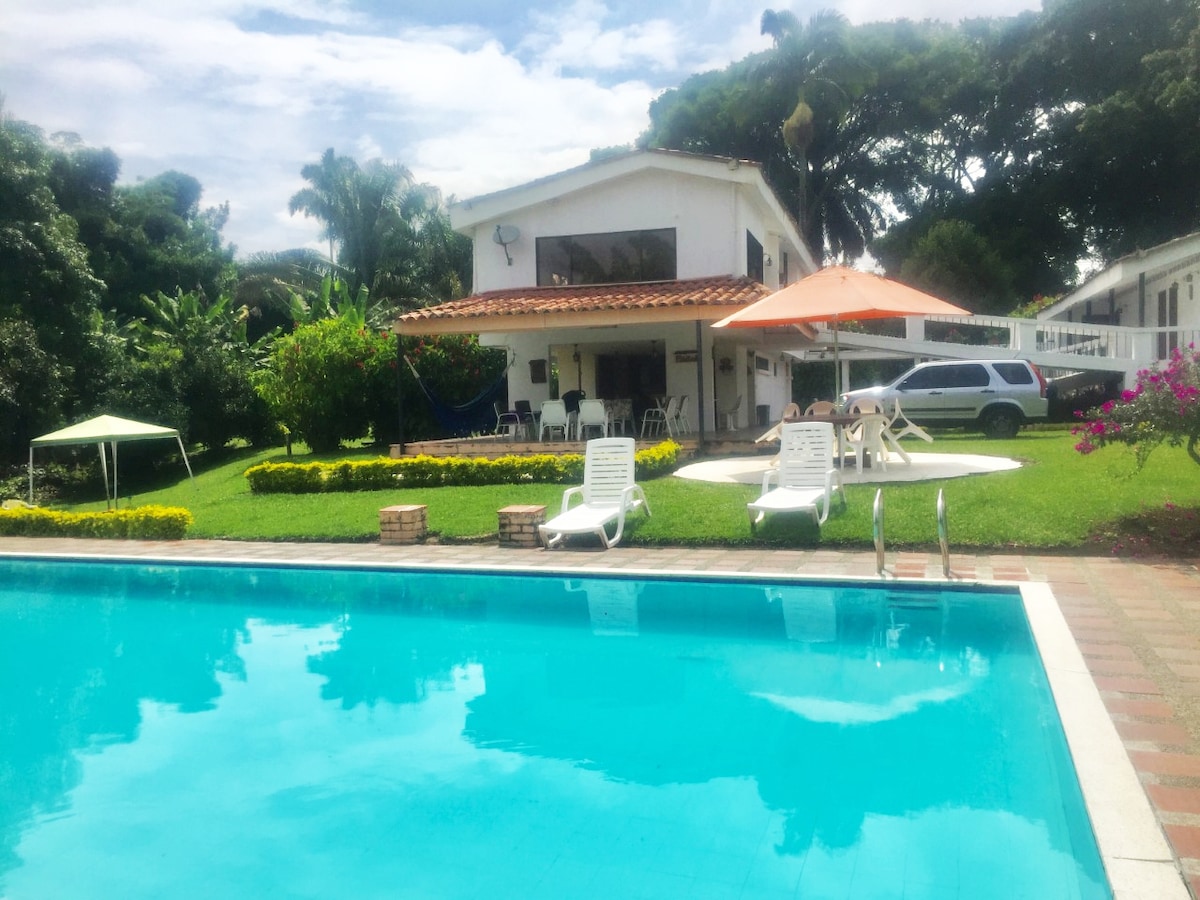 Tài sản riêng trong khu vực cà phê của Caldas, lý tưởng để nghỉ ngơi. Nó có hồ bơi, bể sục và 5 phòng ngủ. Cách Santágueda 10 phút và cách Chinchiná 20 phút. Khả năng thuê người giúp việc (tùy thuộc vào tình trạng còn phòng). Ngôi nhà và khu vực ẩm ướt dành riêng cho bạn sử dụng và để đảm bảo an toàn cho bạn, chúng tôi có hàng rào bao quanh.