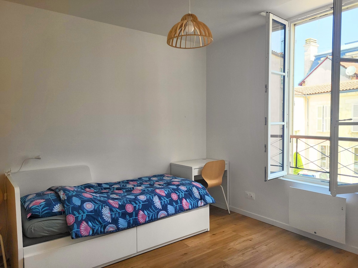 Ở trung tâm thành phố, gần cảng cũ, căn hộ T2 quyến rũ rộng 60 m2 , nằm ở tầng 2 và tầng cuối cùng của một nơi cư trú nhỏ, rất yên tĩnh. Được tân trang lại bởi nhà thiết kế nội thất. Các cửa hàng và khu giải trí nằm dưới chân tòa nhà. Sống trong kỳ nghỉ của bạn bằng cách đi bộ hoặc đi xe đạp ở La Rochelle. Xe buýt biển cách đó 50 m, trạm tàu hỏa và trạm xe buýt cách đó 500 m, cho thuê xe đạp cách 50 m. Ngôi nhà này được kết nối với WiFi