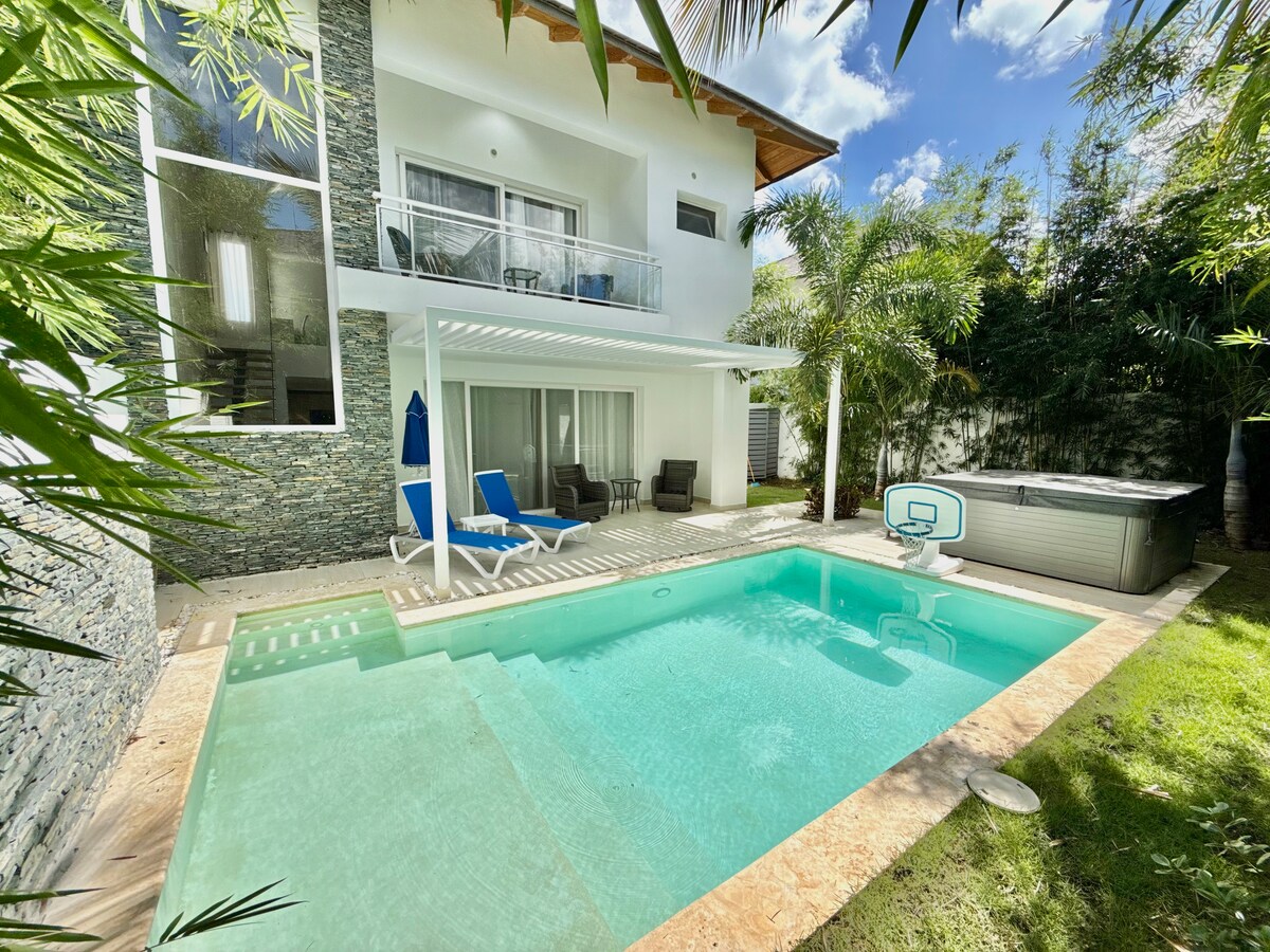 Modern 3BR villa with private pool & beach club access in Playa Nueva Romana. Welcome to Villa La Perla Blanca-Your Private Tropical Escape Step into modern luxury at Villa La Perla Blanca,where comfort meets style in the heart of paradise. This stunning villa features a private swimming pool ,an inviting outdoor jacuzzi ,and a lush garden that ensures total privacy .Whether you are enjoying a morning coffe on the terrace or a sunset cocktail by the pool, every moment here feels special
