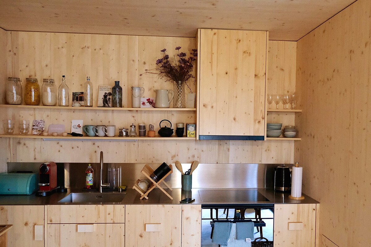 On l'a construite pour nous avec coeur, cette petite maison. Elle se trouve à proximité de notre maison d'habitation, mais elle bénéficie d'une vue dégagée et préserve votre intimité. Vous allez vous sentir chez vous. On rêve en regardant la vue, la course du soleil, sur une des terrasses ou au coin du feu. Pour déconnecter, découvrir la Gruyère, s'isoler pour télétravailler, s'évader en amoureux... Le plus difficile est d'en repartir.