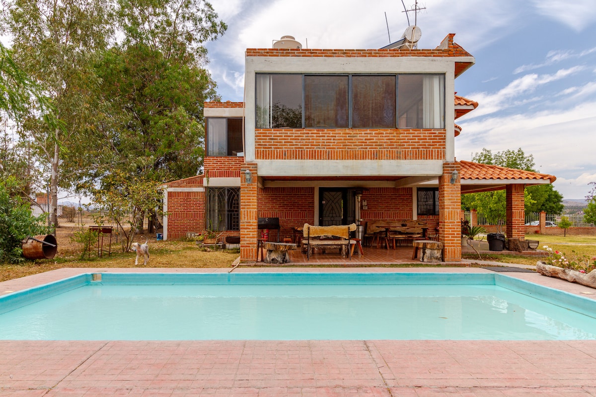 Ngôi nhà mộc mạc đẹp với hồ bơi khí hậu có tấm pin mặt trời và cảnh quan xanh, một ngọn đồi nhỏ mà bạn có thể leo lên và từ đỉnh của nó chiêm ngưỡng quang cảnh "El Cerro Del Muerto" ở phía tây, và về phía đông có tầm nhìn toàn cảnh thành phố Aguascalientes. 3 phòng ngủ, một phòng TV, 2 phòng tắm đầy đủ, phòng khách và phòng ăn, nhà bếp và một kiosco nơi bạn có thể thư giãn trong khi con cái hoặc Bạn bè của bạn chơi trong hồ bơi.