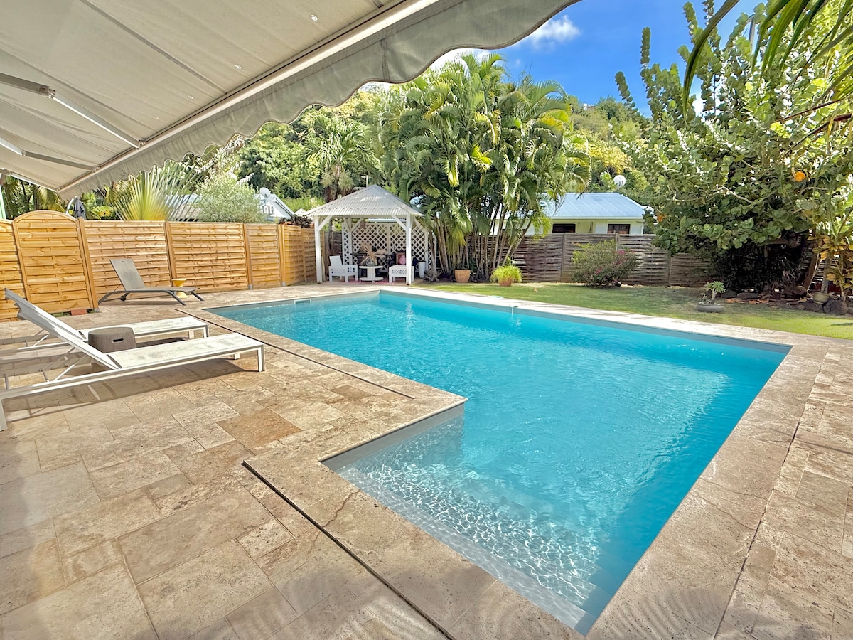 Bungalow nhỏ đầy quyến rũ hoàn toàn độc lập với hồ bơi. Vị trí lý tưởng trong một khu dân cư, trên mặt nước, cách khu bảo tồn bán đảo Caravelle 2 bước. Thiên đường nhỏ yên bình trong khu vườn nhiệt đới của chúng tôi mang đến cho bạn tầm nhìn ra biển tuyệt đẹp và tất cả các tiện nghi bạn cần cho một kỳ nghỉ lãng mạn hoặc gia đình tuyệt vời. Nhà của chúng tôi ở bên cạnh, chúng tôi sẽ có mặt ở đó để chào đón bạn và hướng dẫn bạn khám phá hòn đảo hoa xinh đẹp của chúng tôi.