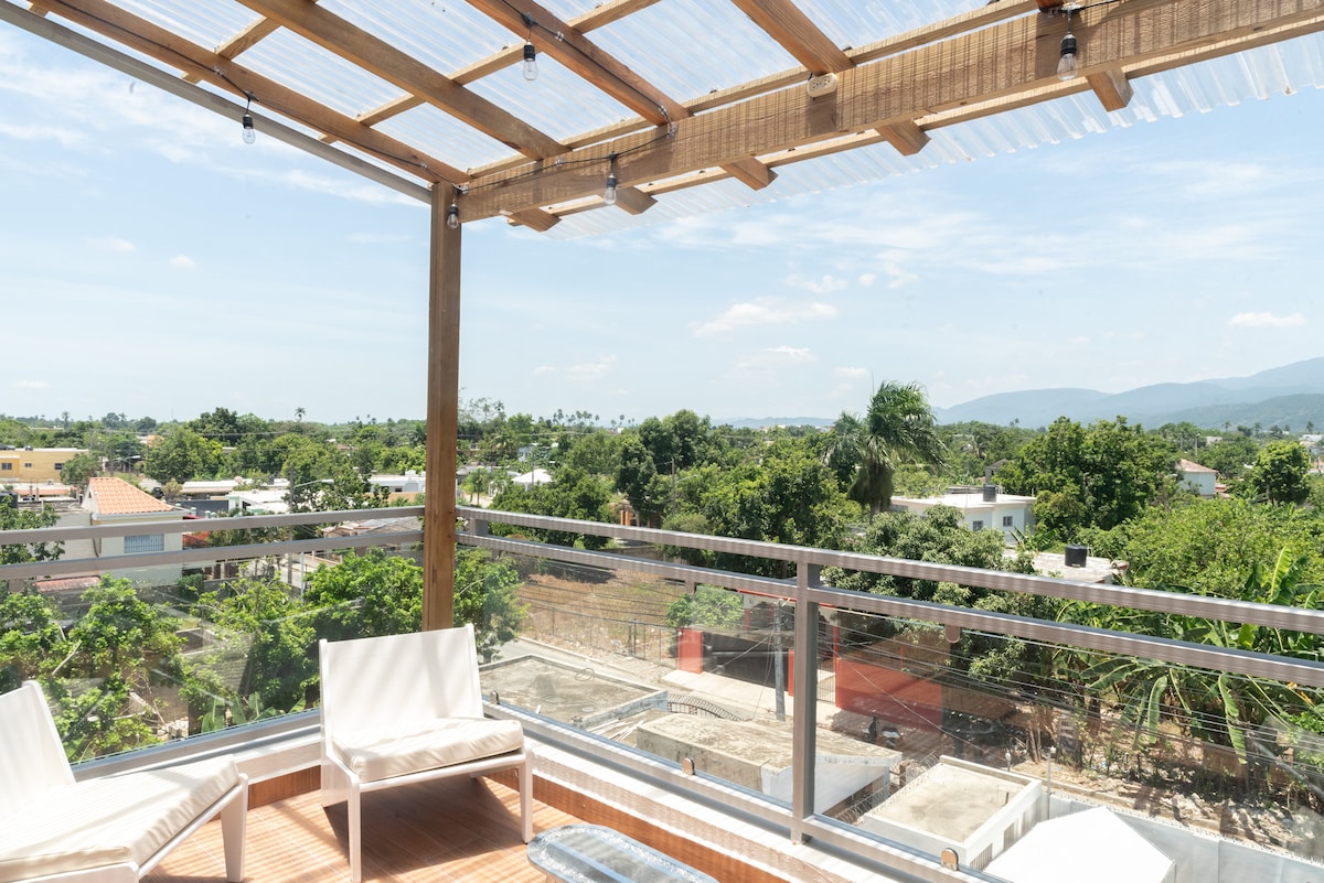 Located less than 15 minutes from Santiago International Airport and HOMS Hospital, and under 10 minutes from ACERO ESTRELLA. Strategically positioned with easy access to Santiago, Moca (15 min), and La Vega (20–25 min). Restaurants, supermarkets, and clinics nearby. The home offers exterior security cameras, full perimeter fencing for privacy, solar panels, hot water in bathrooms and high-speed Wi-Fi for a safe and comfortable stay.