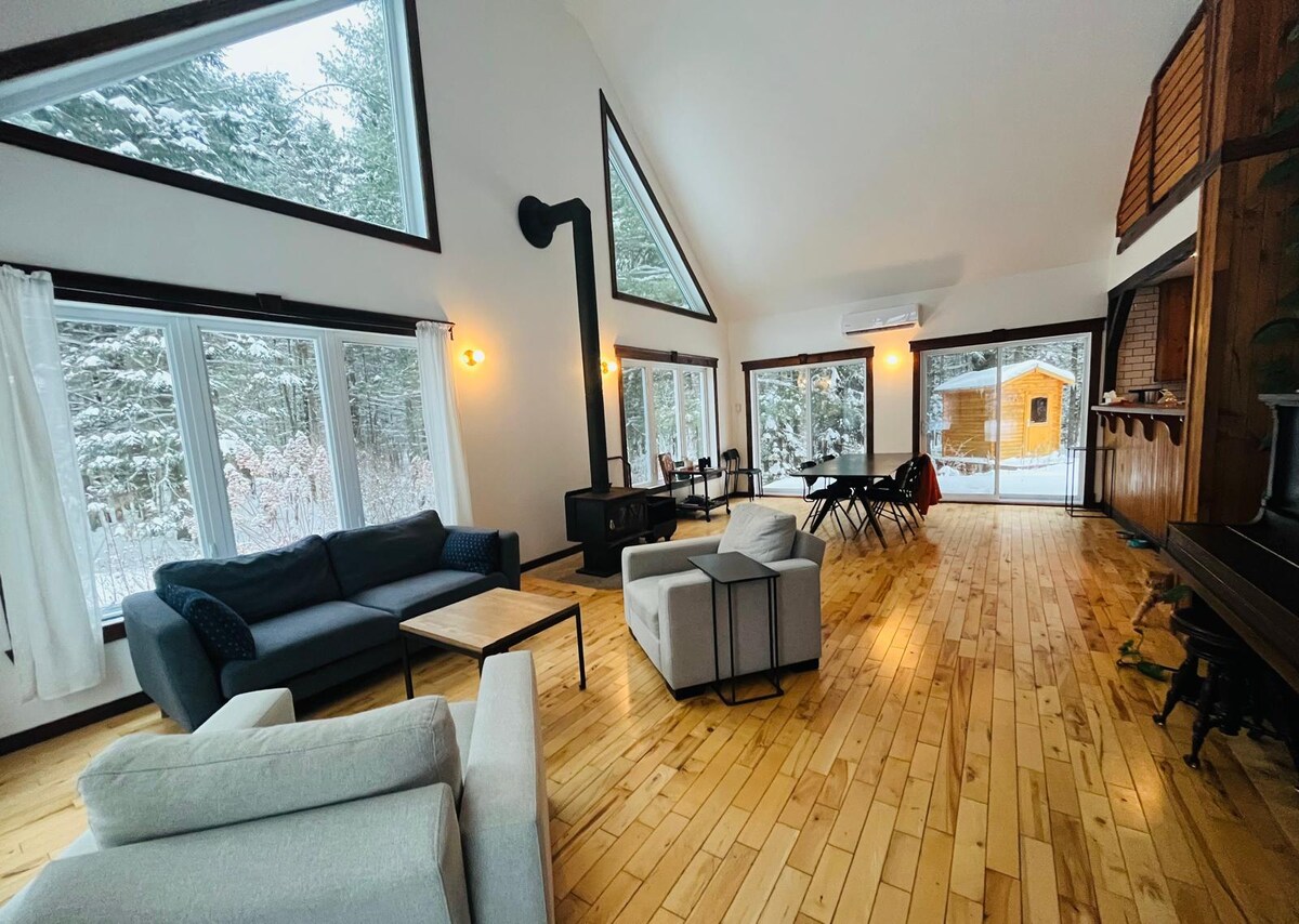 Nhà gỗ chalet rừng Bắc Âu | Phòng xông hơi khô | 70 phút đến MTL