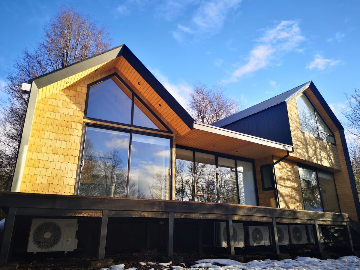 Cabin đẹp -Martín Pescador - huy hiệu gỗ 55 mts2 với 2 phòng ngủ, một phòng có giường đôi với giường 2 giường và giường đôi rộng 2 giường và giường một m2. Hệ thống sưởi bằng bộ tản nhiệt điện và hệ thống sưởi bằng viên trung tâm bổ sung. Phòng tắm rộng rãi với máy giặt được bao gồm. Bếp trang bị tiện nghi và tủ lạnh mini. Xây dựng tuyệt vời với cách nhiệt, sàn gỗ và tất cả các cửa sổ trong Termopanel. Lựa chọn bữa sáng tuyệt vời với giá 7.500 peso Chile p/p.