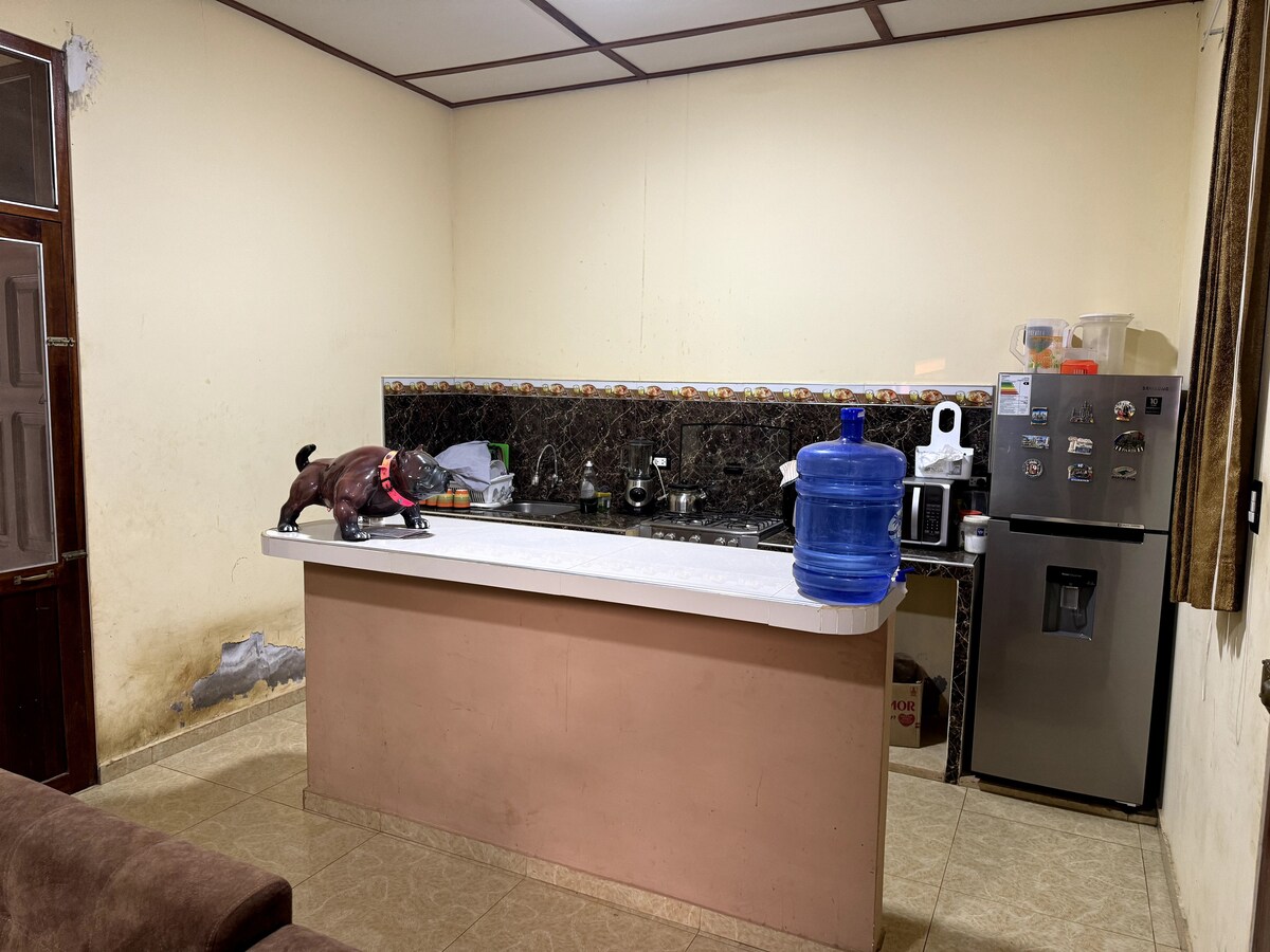 Si vienes por paseo o por trabajo es un lugar ideal, es tranquilo, seguro y con buen espacio, cómodo y confortable. Es un espacio familiar, del cual estoy alquilando mi casa, es totalmente independiente. Cuenta con su pequeño patio, sala y comedor en el mismo ambiente separado por una isla en el medio, 1 habitación con cama doble y baño privado. La casa es amplia y tendrán toda la comodidad que necesitan. Y por último, para el calor de nuestro Puerto Maldonado tengo 2 ventiladores.