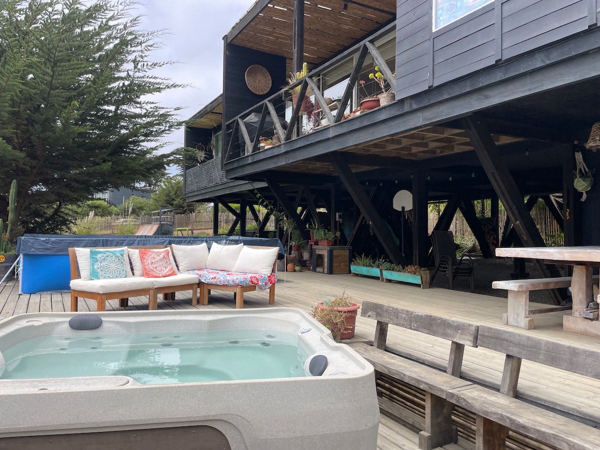 Enjoy the peace and quiet and this recently built stylish cabin. Located just outside the quaint little town of Cahuil, it is the perfect spot to enjoy explore the surrounding areas. Just a 10 minute drive to Punta de Lobos and 20 minutes to Pichilemu centre. Wood is provided at the property for you to heat up the Hot Tub and enjoy free of charge. We also provide the service to heat it up for you at an additional fee. Starlink WIFI