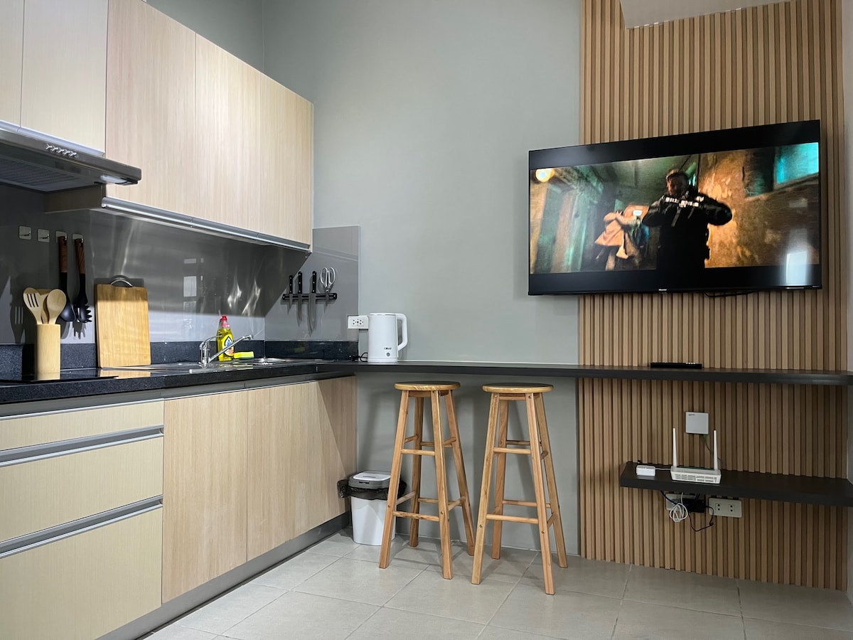 This stylish place to stay is perfect for group trips. Business Meets Pleasure – Executive Studio with a Balcony Escape. Free WiFi (50-100MBPS) Free Netflix Free Access to swimming pool upto 3pax Free Dental Kits, Provided Body Wash and shampoo. Free Drinking Water Can do cooking Water heater is available Towels provided Extra Mattress and beddings will be provided if booked by 4persons.