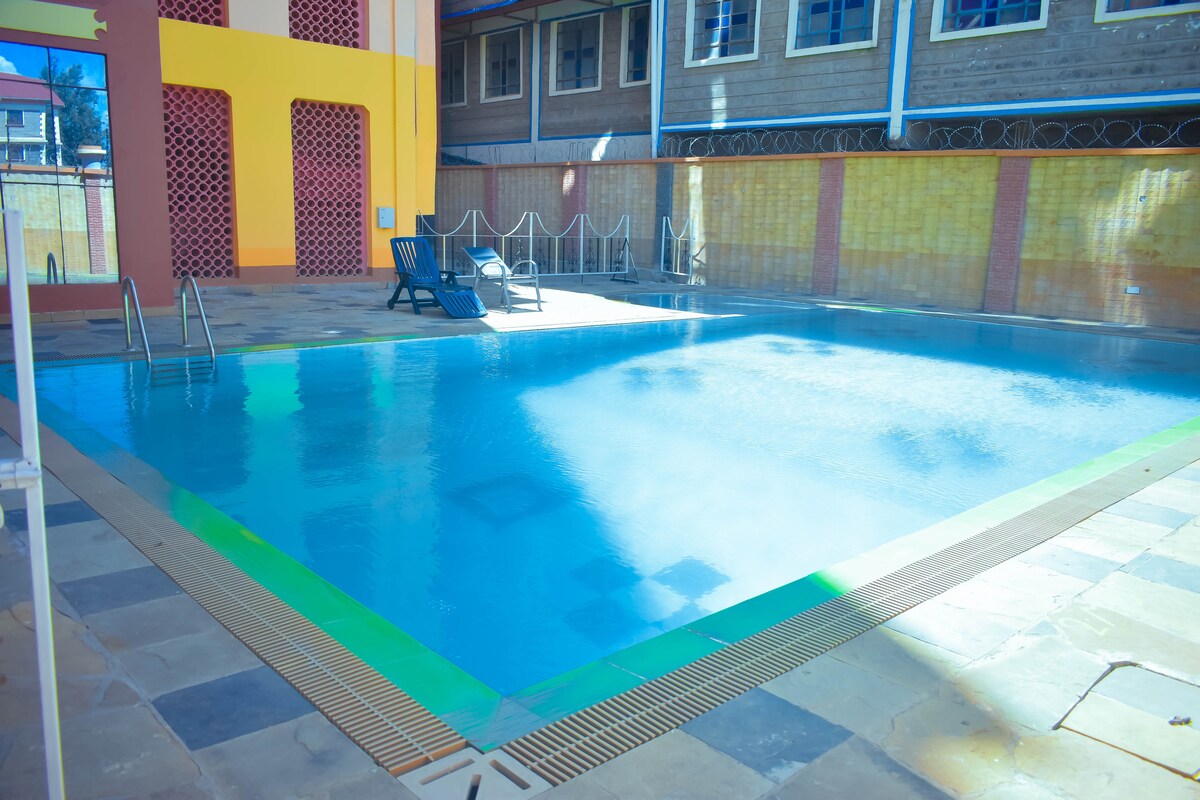 Căn hộ được trang bị nội thất hiện đại này sẽ mang đến cho bạn cảm giác như ở nhà, khách sạn vũ khí thể thao gần đó, nơi bạn có thể sử dụng hồ bơi,phòng xông hơi và Jacuzzi, By Grace cách tay thể thao khoảng 100mtrs và gần câu lạc bộ thể thao nanyuki, Có wifi và cáp dstv miễn phí